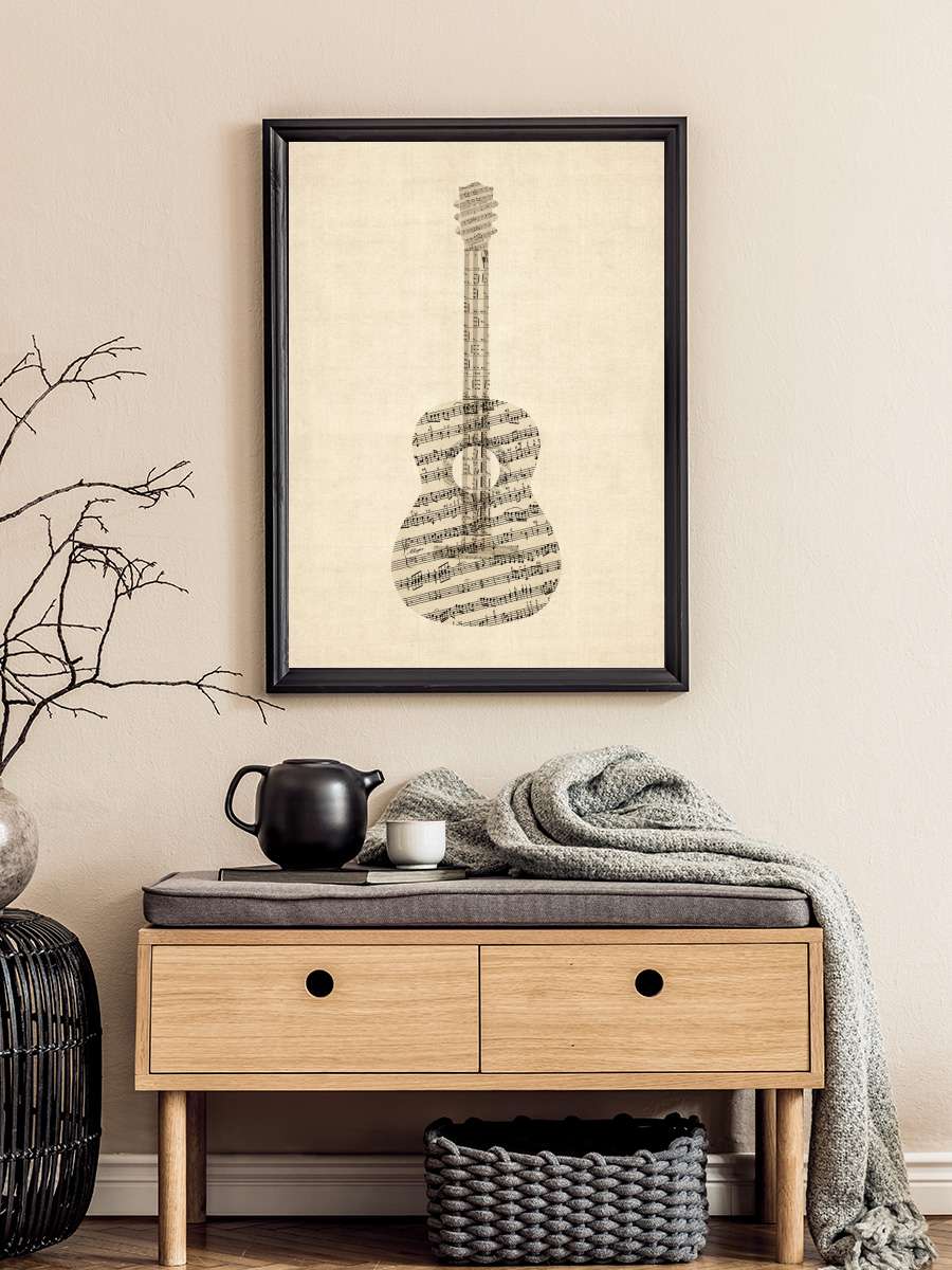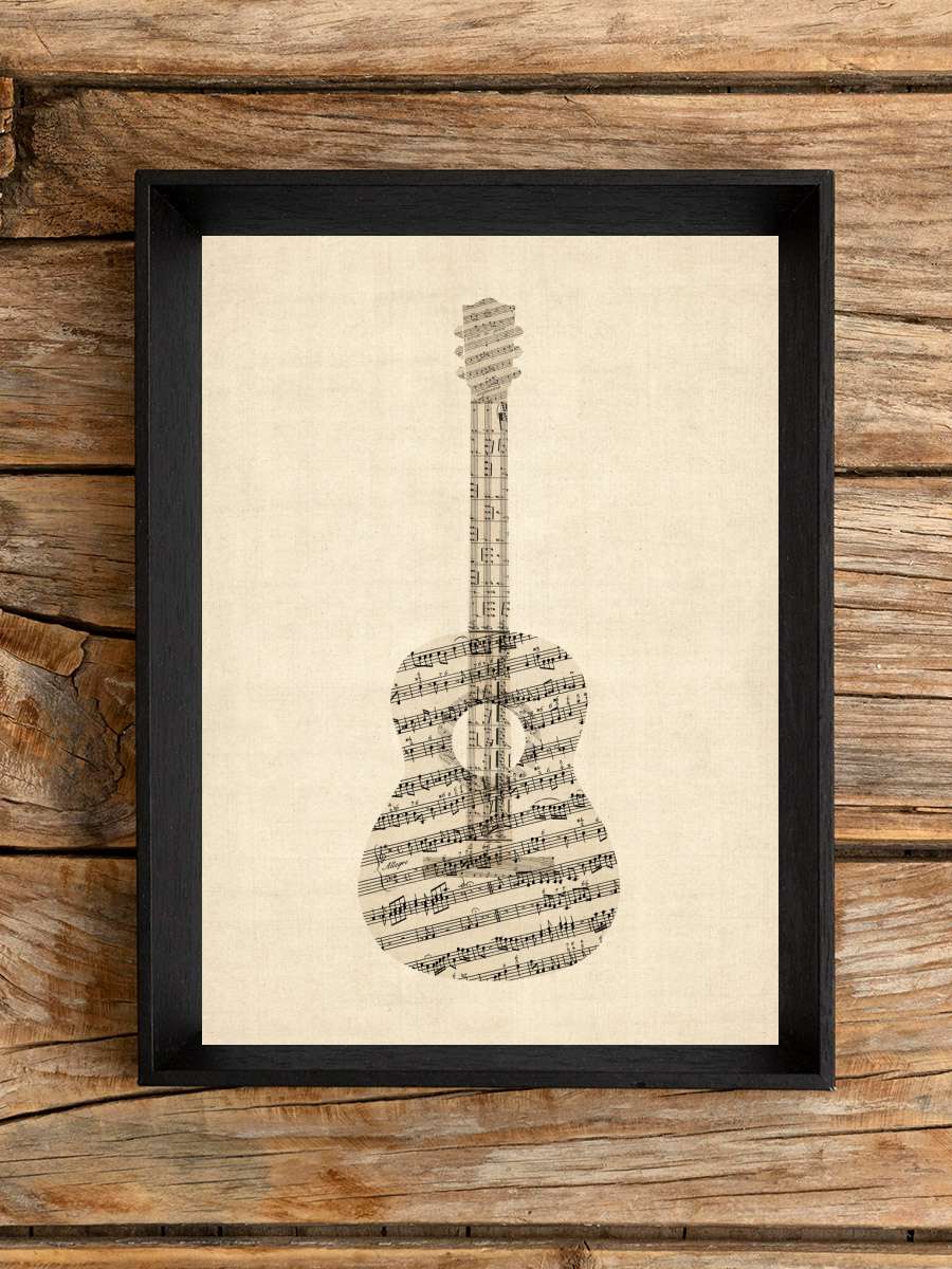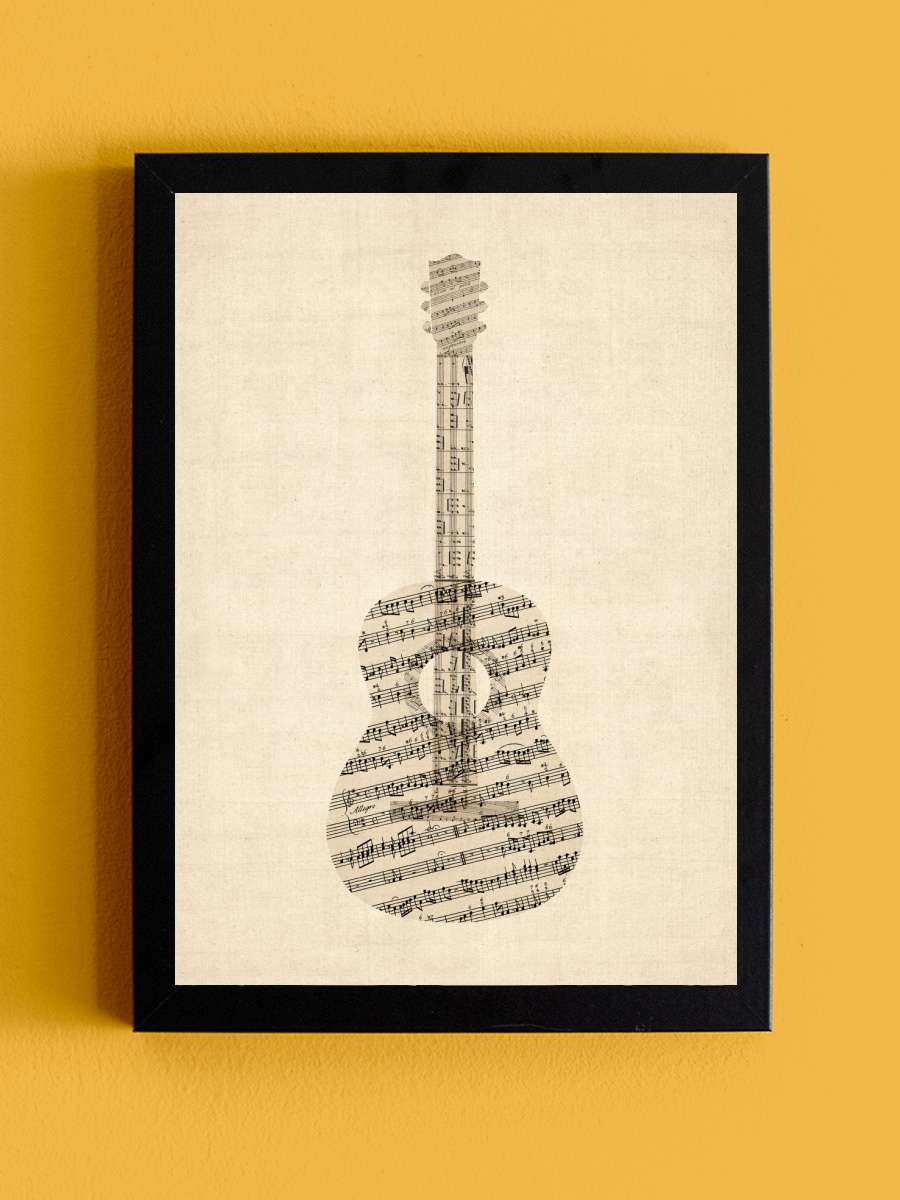 Acoustic Guitar Old Sheet Music Müzik Poster Tablo Siyah Çerçeveli Yüksek Kalite Müzik Duvar Tablo