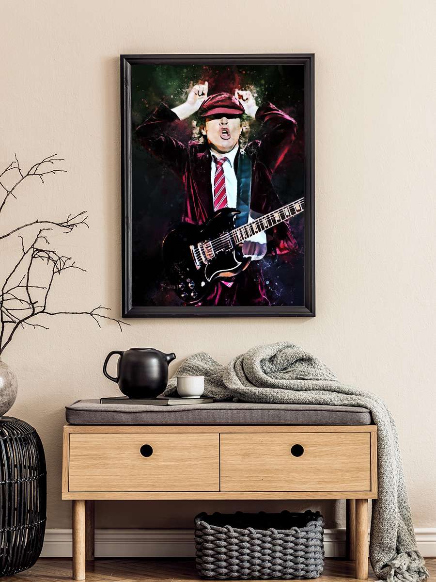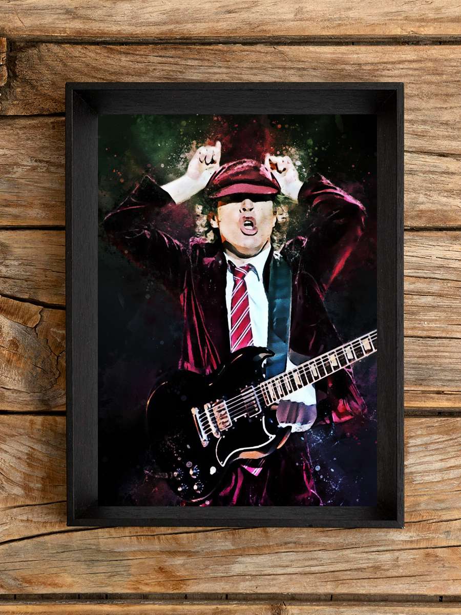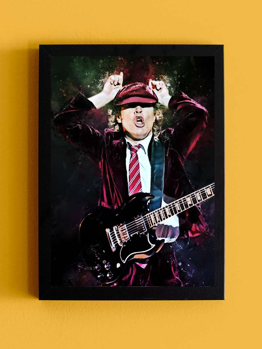 Angus Guitar Müzik Poster Tablo Siyah Çerçeveli Yüksek Kalite Müzik Duvar Tablo