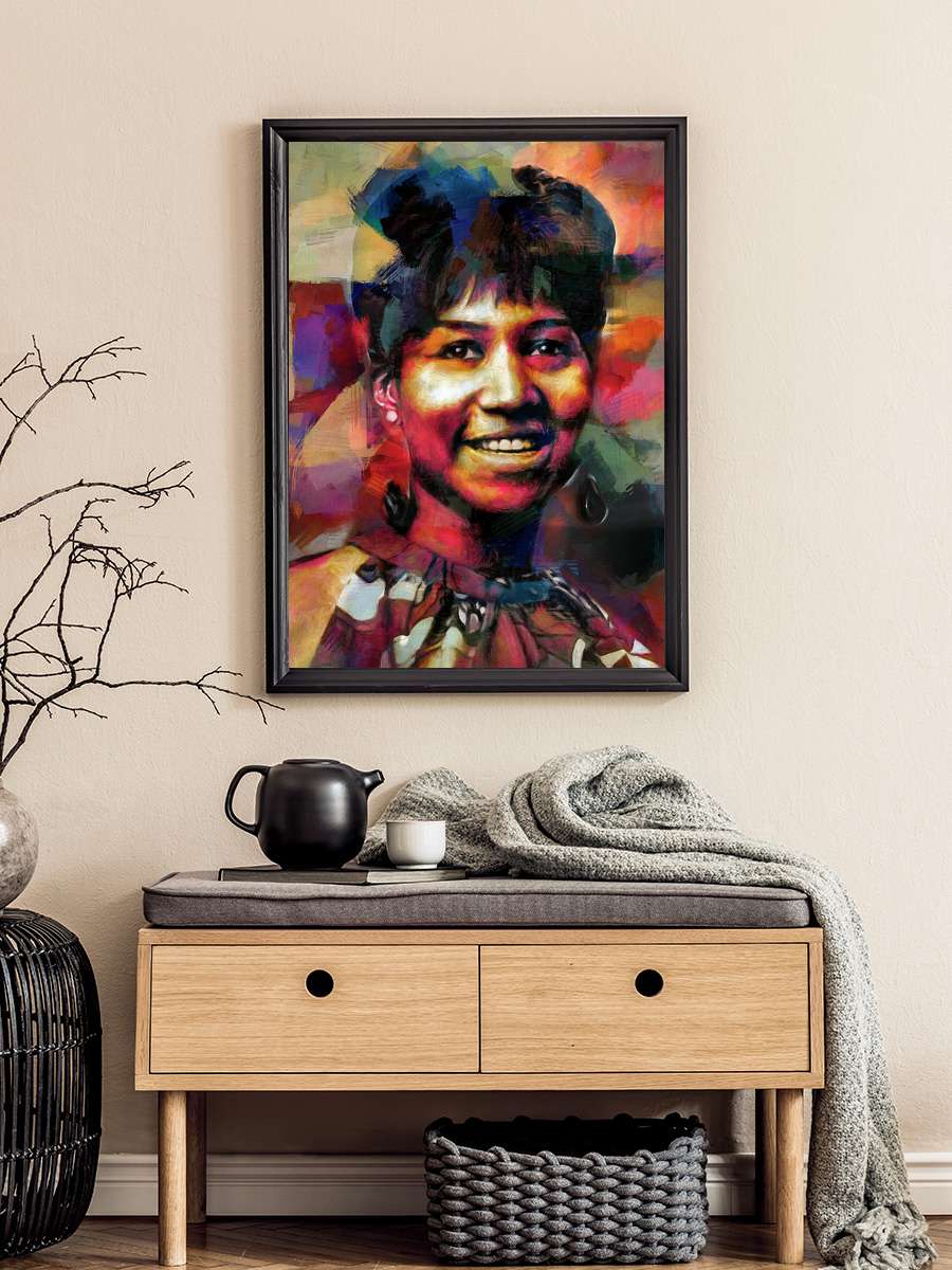 Aretha Müzik Poster Tablo Siyah Çerçeveli Yüksek Kalite Müzik Duvar Tablo