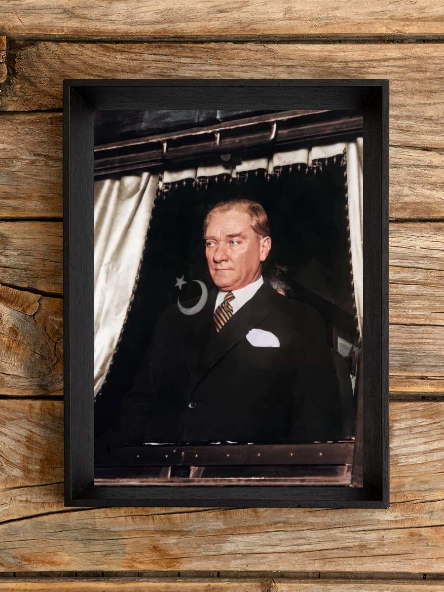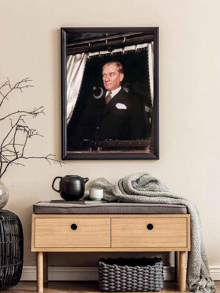 Atatürk Poster Tablo Siyah Çerçeveli Atatürk Duvar Tablo