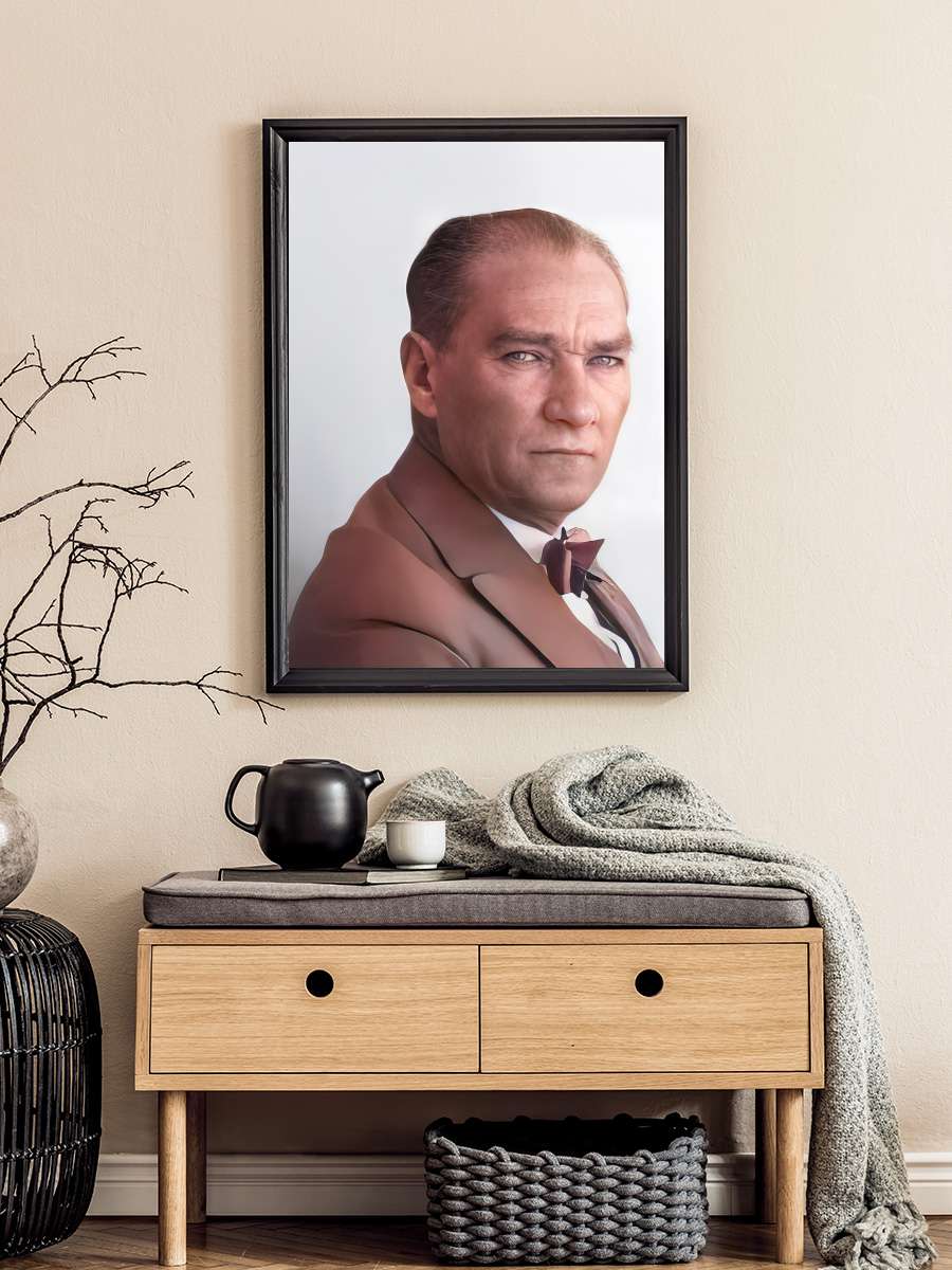 Atatürk Poster Tablo Siyah Çerçeveli Atatürk Duvar Tablo