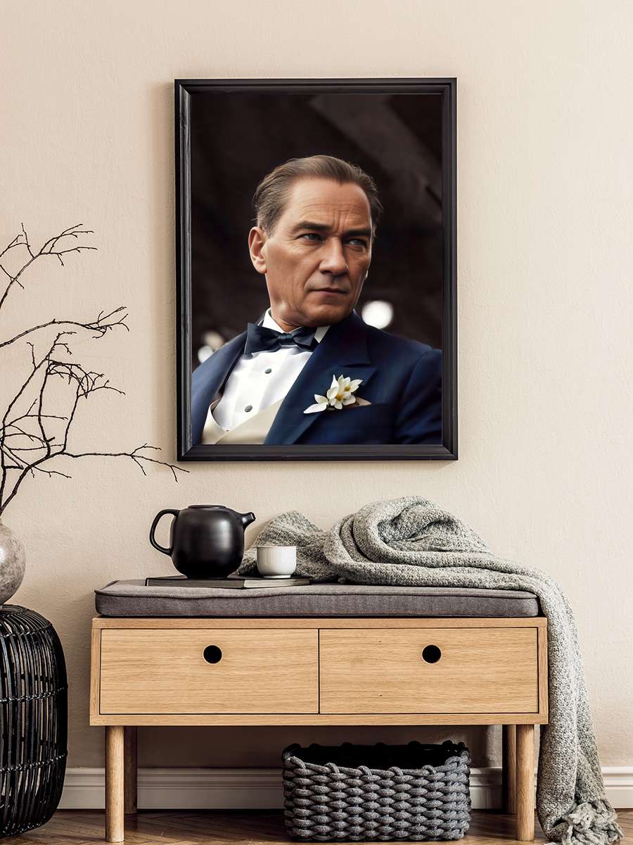 Atatürk Poster Tablo Siyah Çerçeveli Atatürk Duvar Tablo