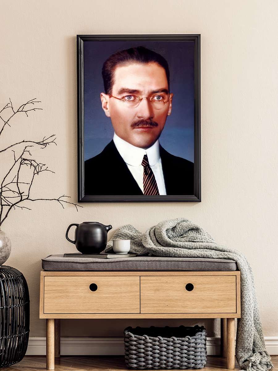 Atatürk Poster Tablo Siyah Çerçeveli Atatürk Duvar Tablo