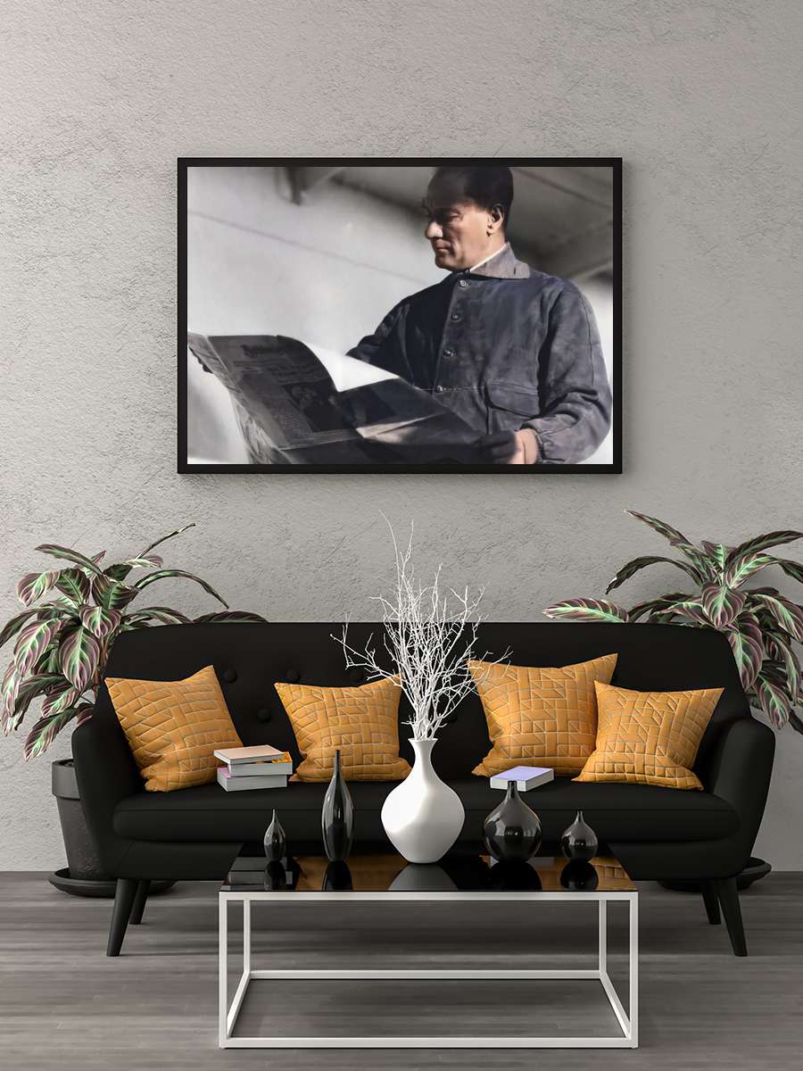 Atatürk Poster Tablo Siyah Çerçeveli Atatürk Duvar Tablo