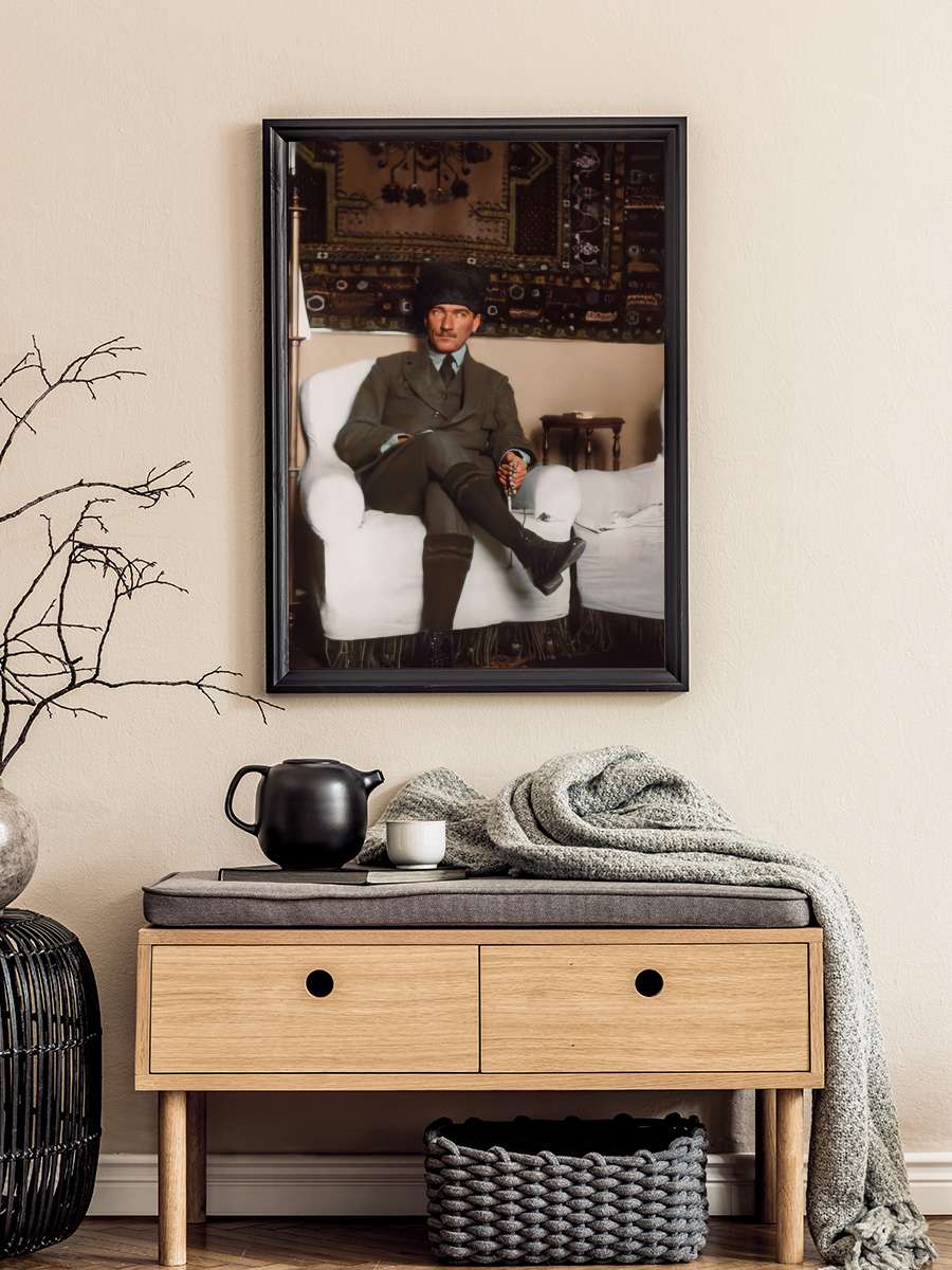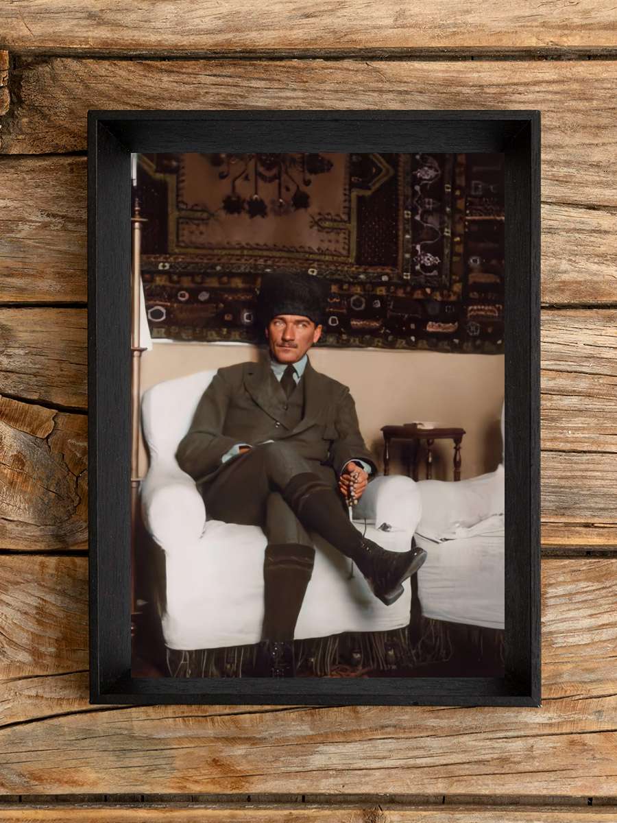 Atatürk Poster Tablo Siyah Çerçeveli Atatürk Duvar Tablo