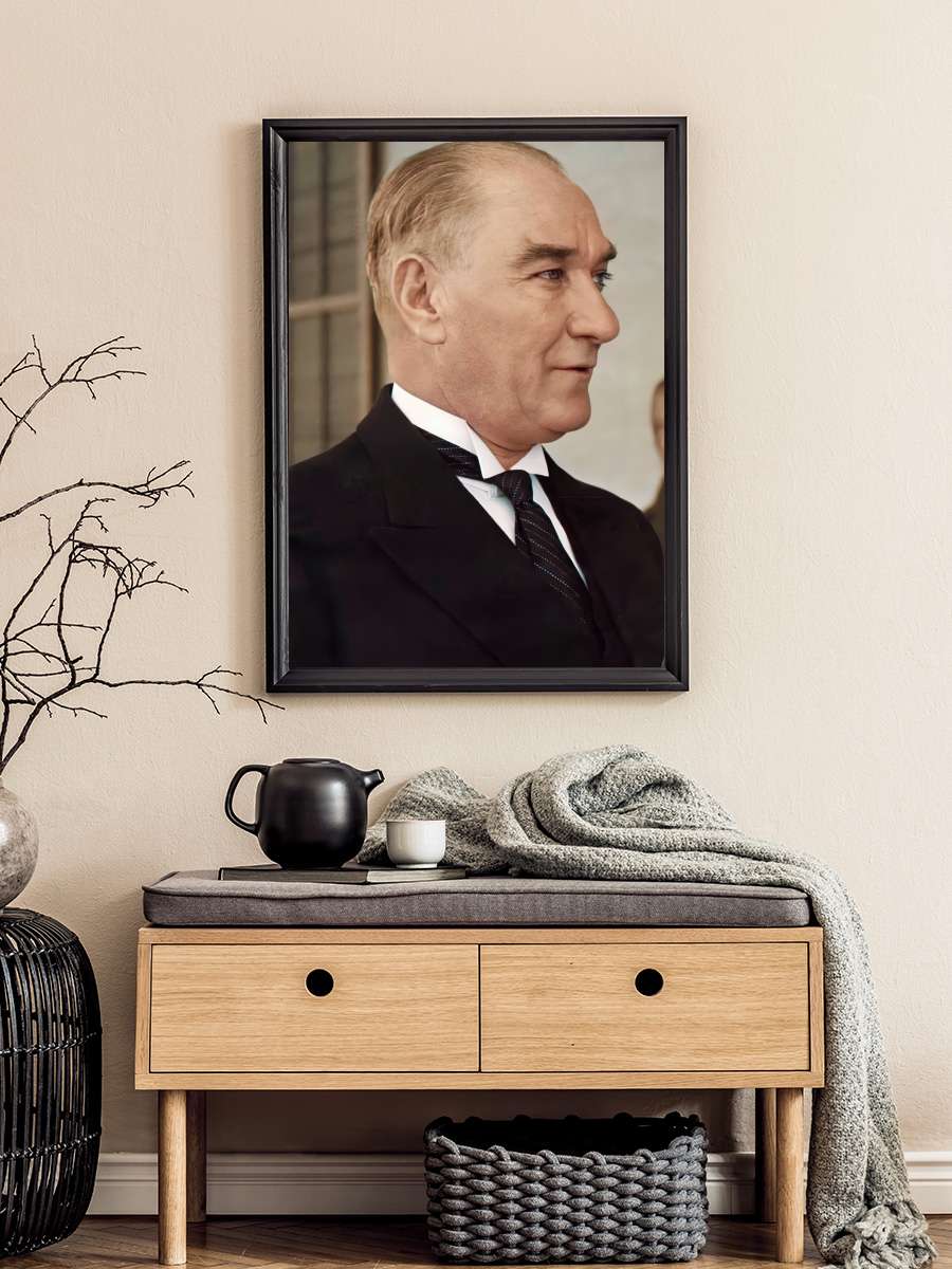 Atatürk Poster Tablo Siyah Çerçeveli Atatürk Duvar Tablo