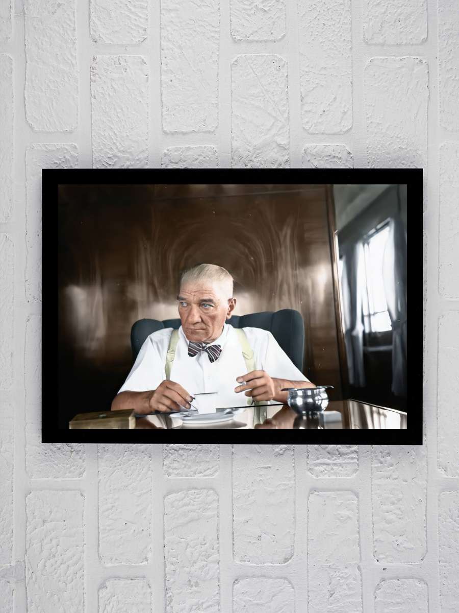 Atatürk Poster Tablo Siyah Çerçeveli Atatürk Duvar Tablo