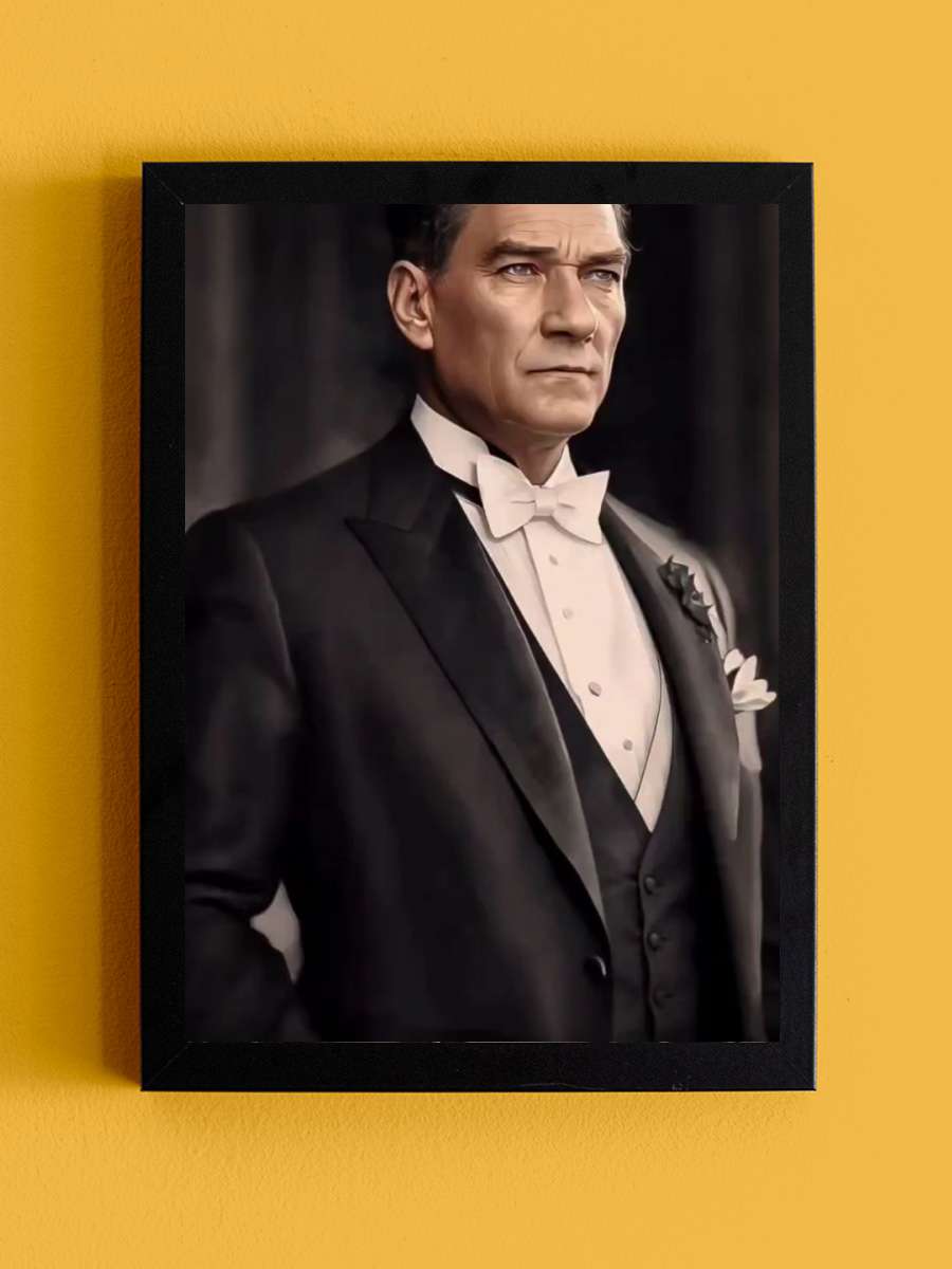 Atatürk Poster Tablo Siyah Çerçeveli Atatürk Duvar Tablo