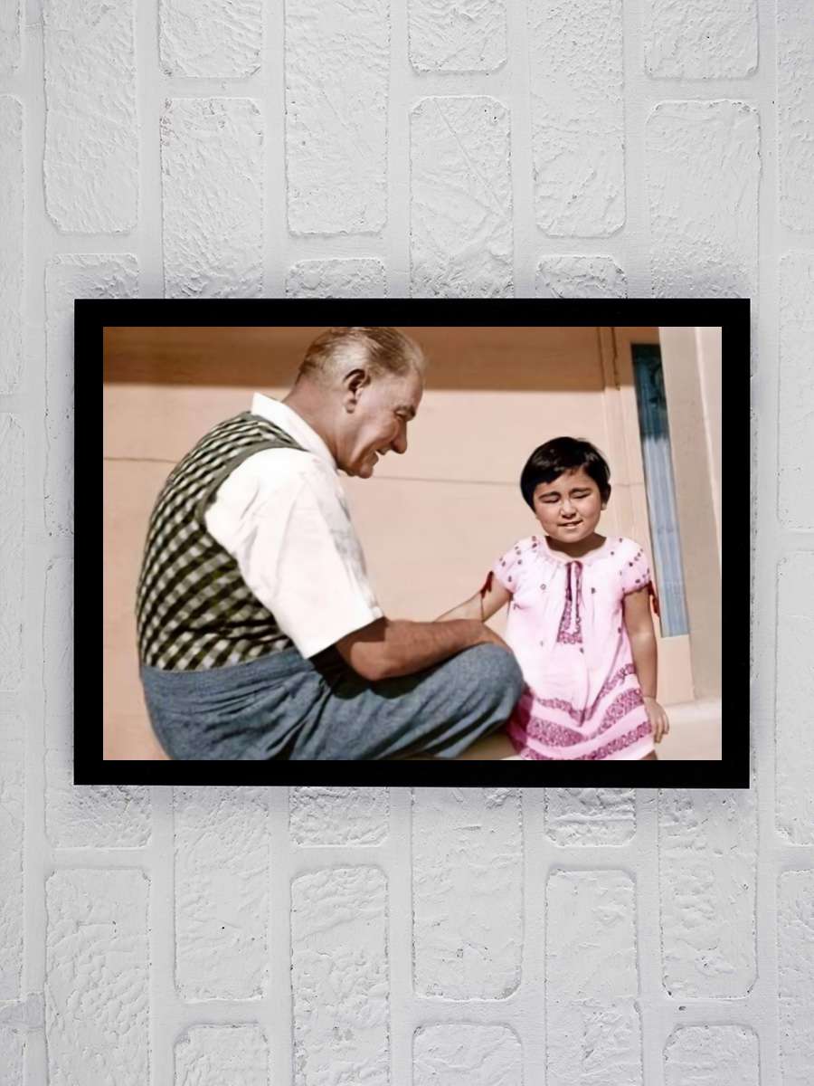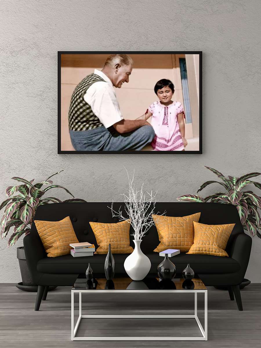 Atatürk Poster Tablo Siyah Çerçeveli Atatürk Duvar Tablo