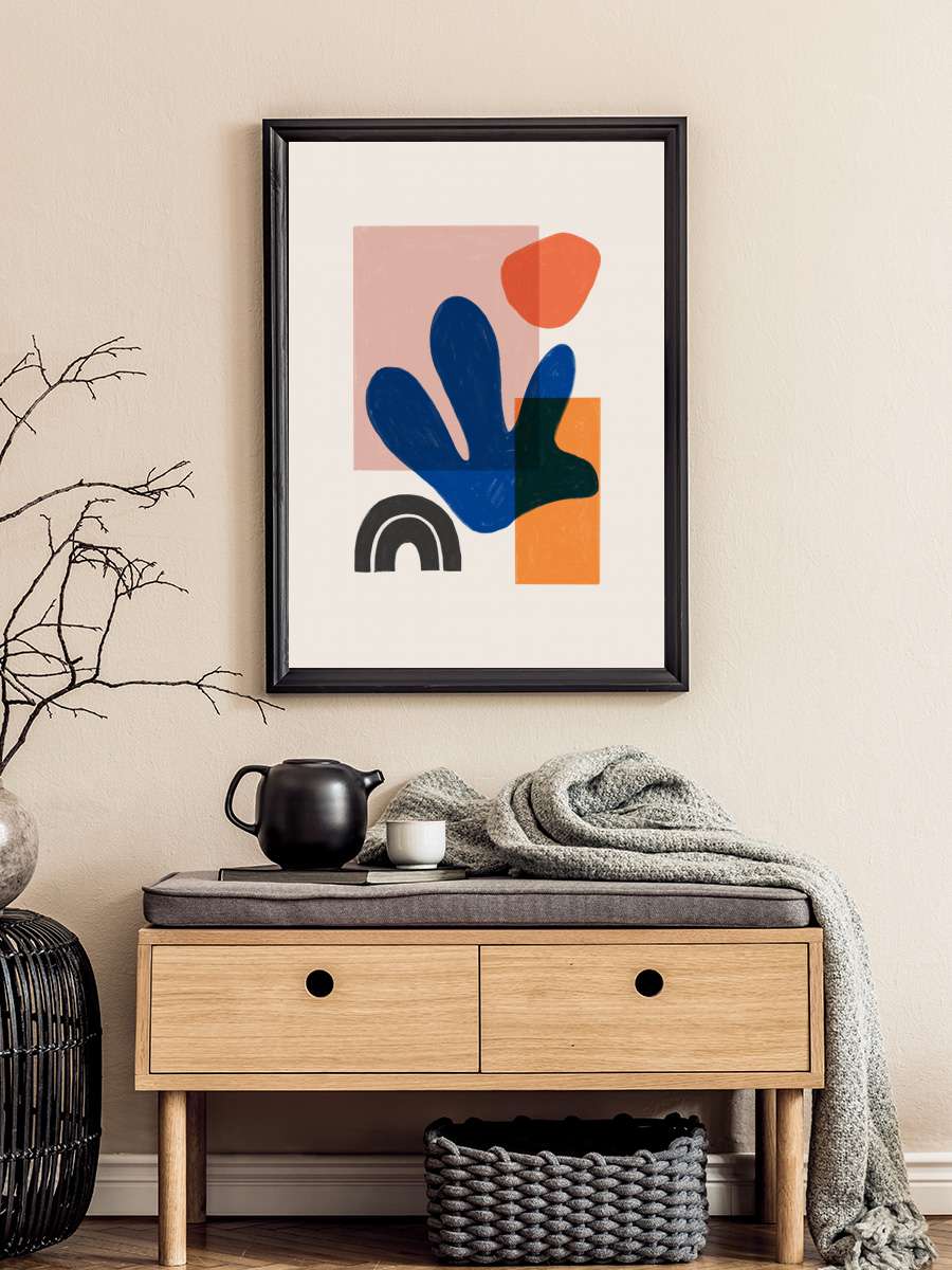 Boho Blue Sanatsal Modern Tablo Siyah Çerçeveli Poster Modern Duvar Tablo