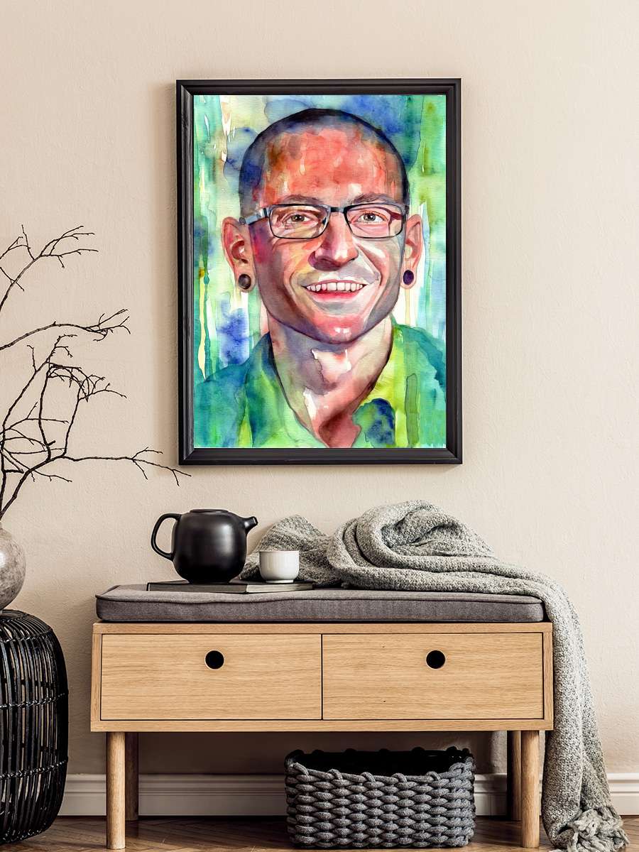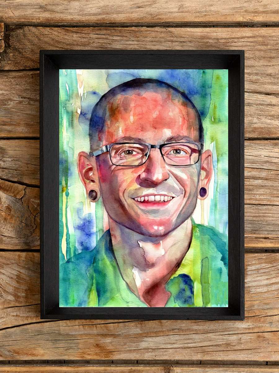 C. Bennington Portrait… Portrait Watercolor Müzik Poster Tablo Siyah Çerçeveli Yüksek Kalite Müzik Duvar Tablo