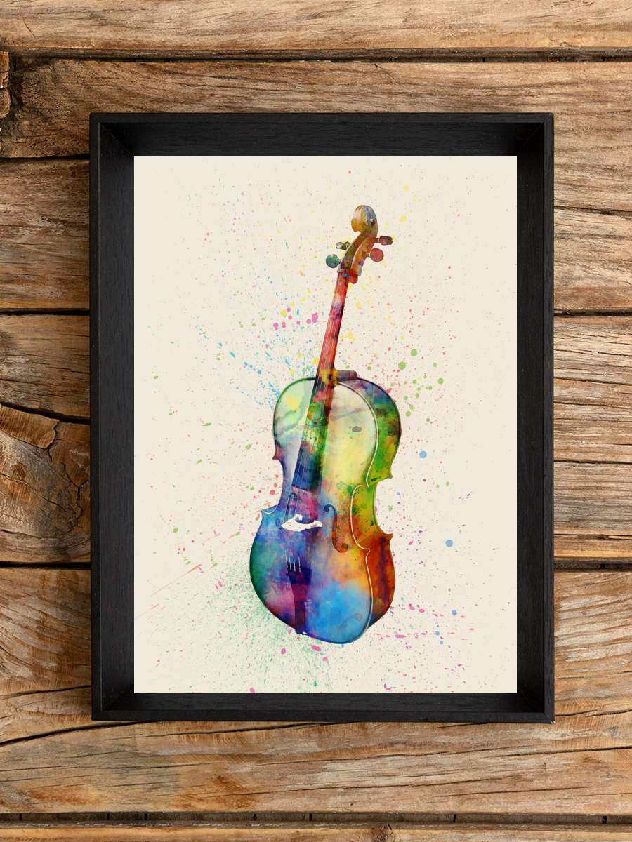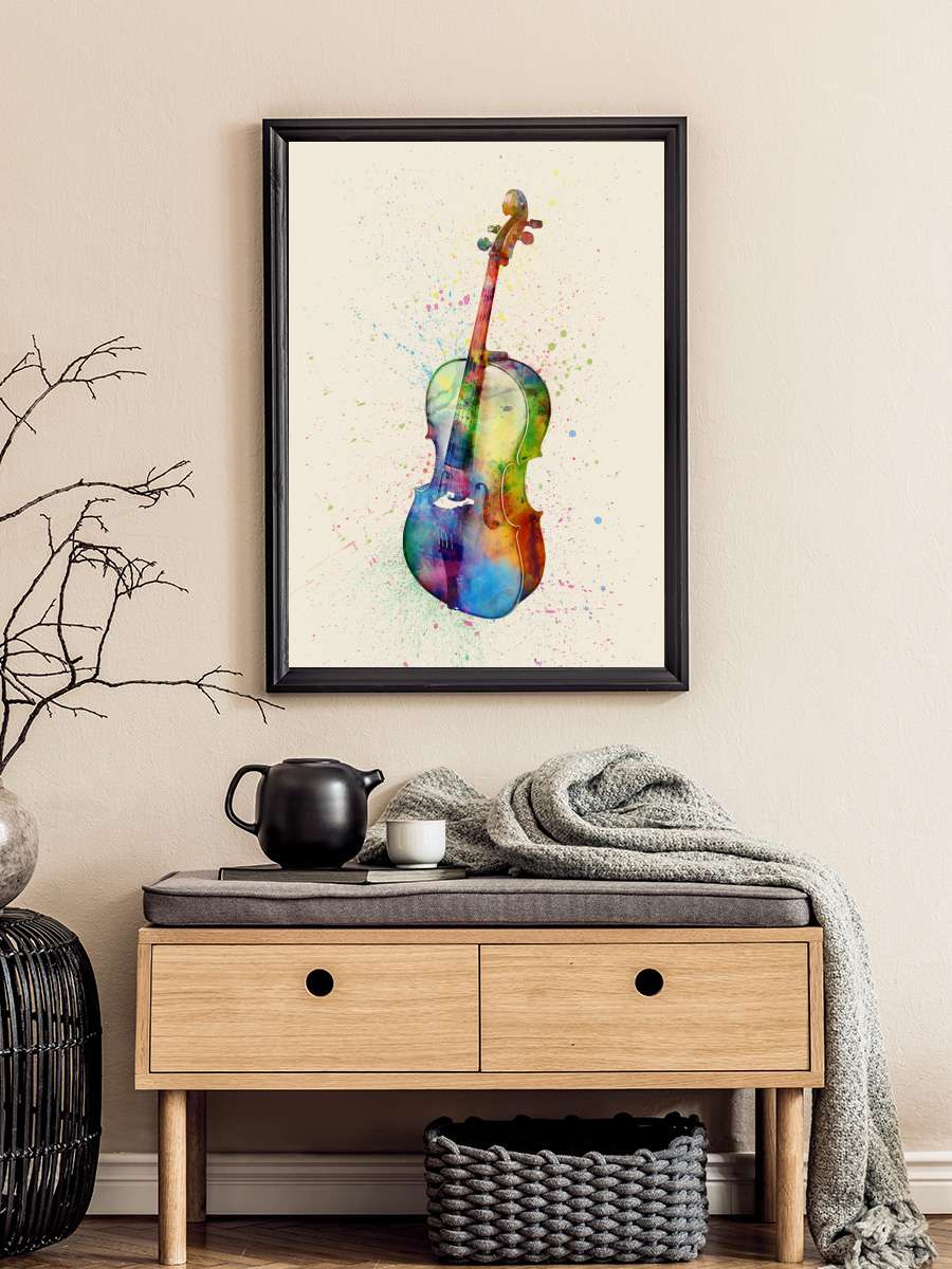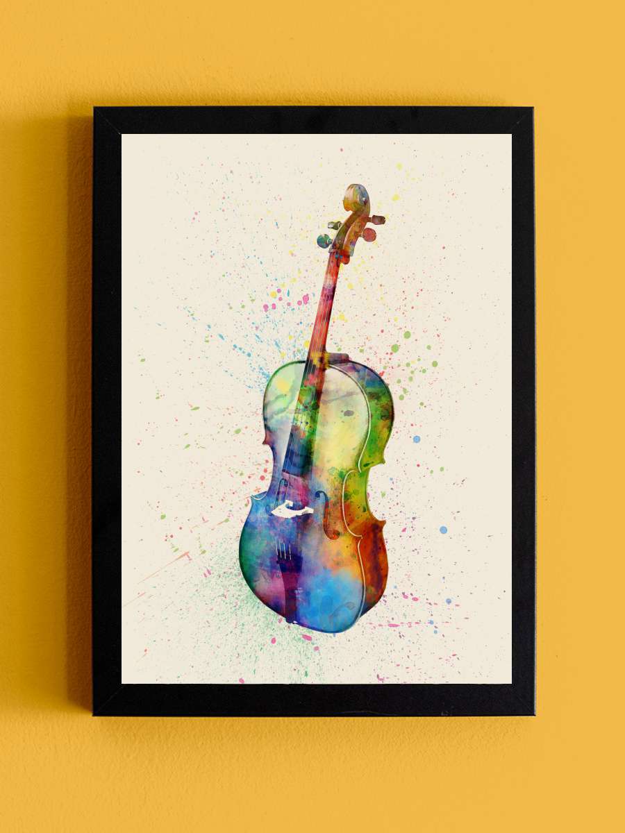 Cello Abstract Watercolor Müzik Poster Tablo Siyah Çerçeveli Yüksek Kalite Müzik Duvar Tablo