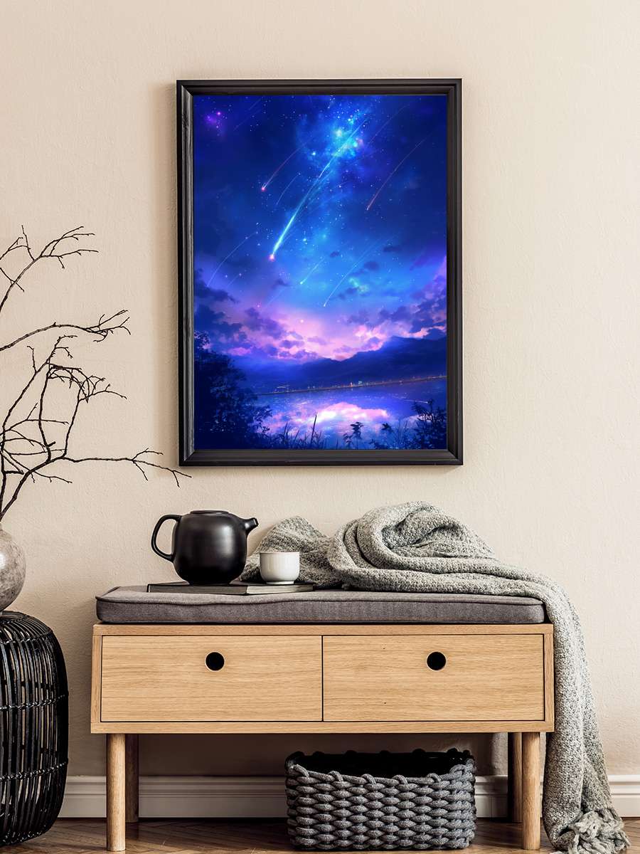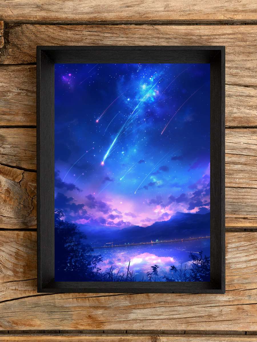 Comet Night Sky Anime Style Anime Poster Tablo Siyah Çerçeveli Yüksek Kalite Anime Duvar Tablo