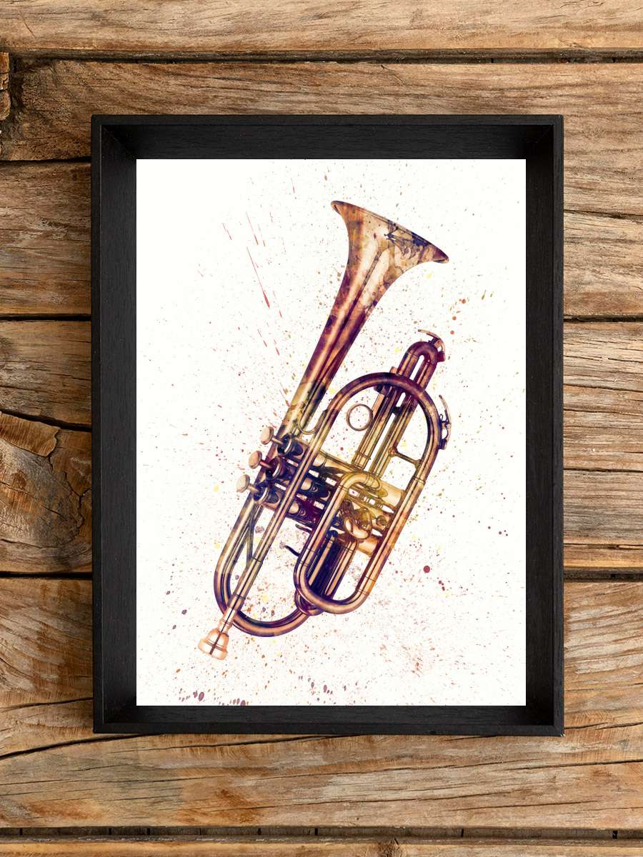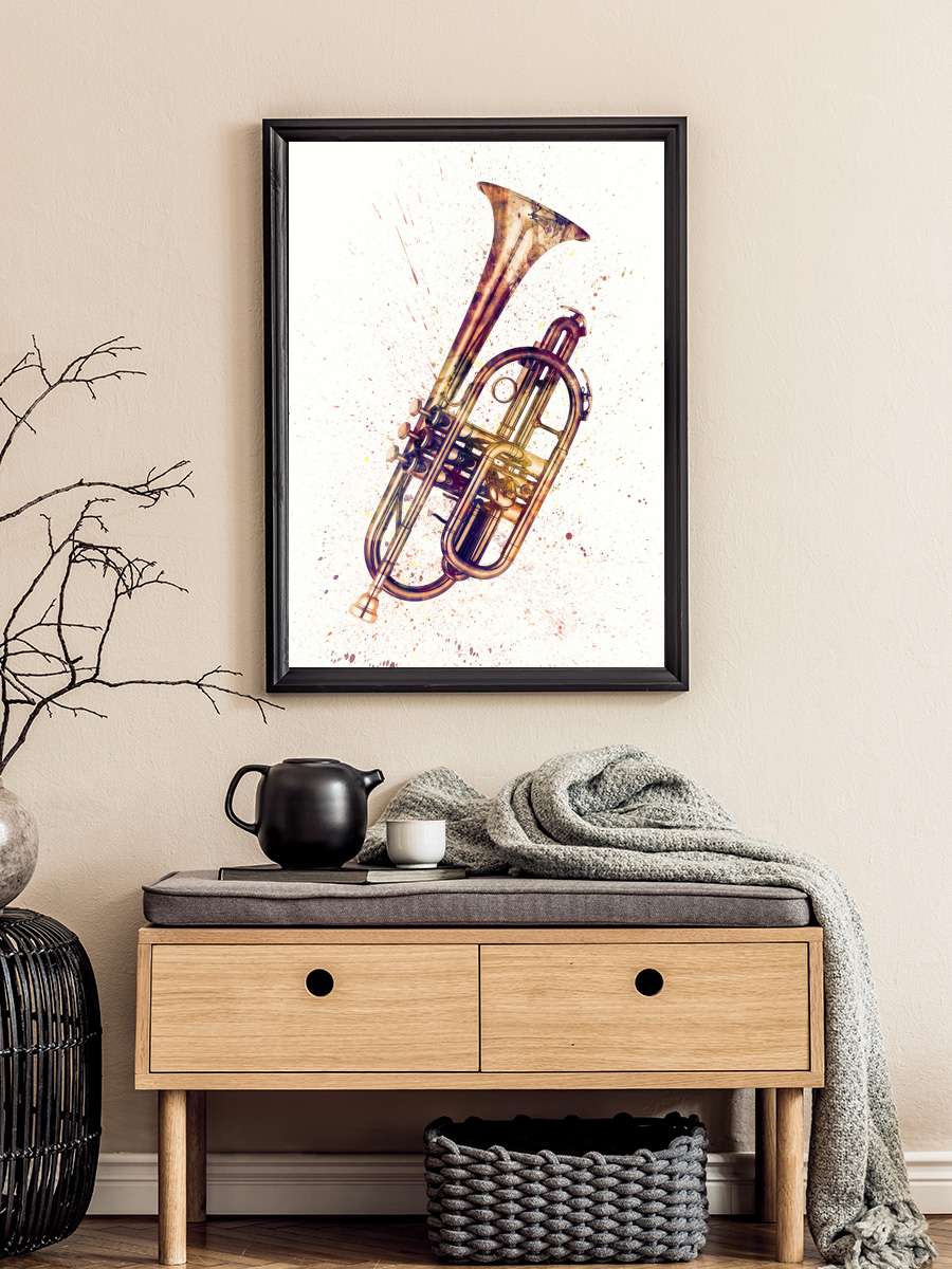 Cornet Abstract Watercolor Müzik Poster Tablo Siyah Çerçeveli Yüksek Kalite Müzik Duvar Tablo