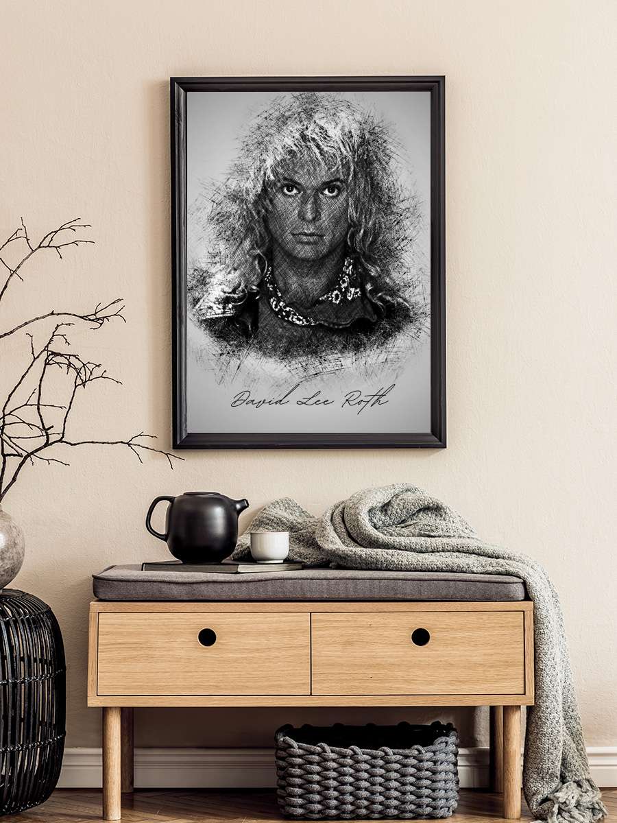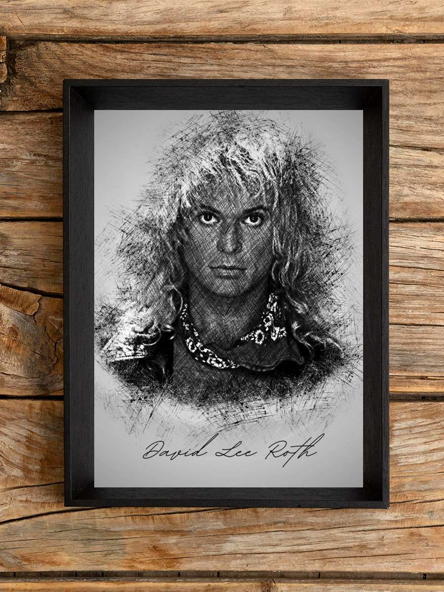 D. Lee Roth Sketch Müzik Poster Tablo Siyah Çerçeveli Yüksek Kalite Müzik Duvar Tablo