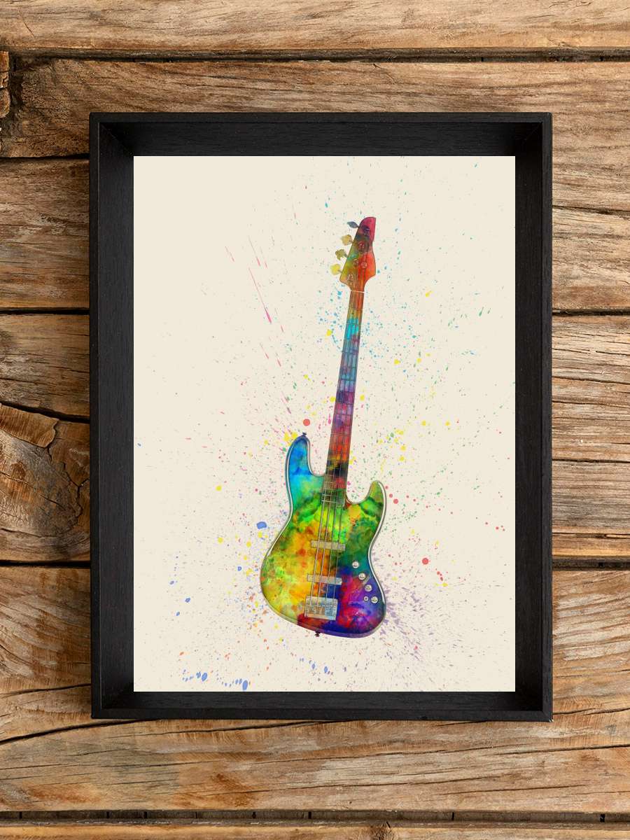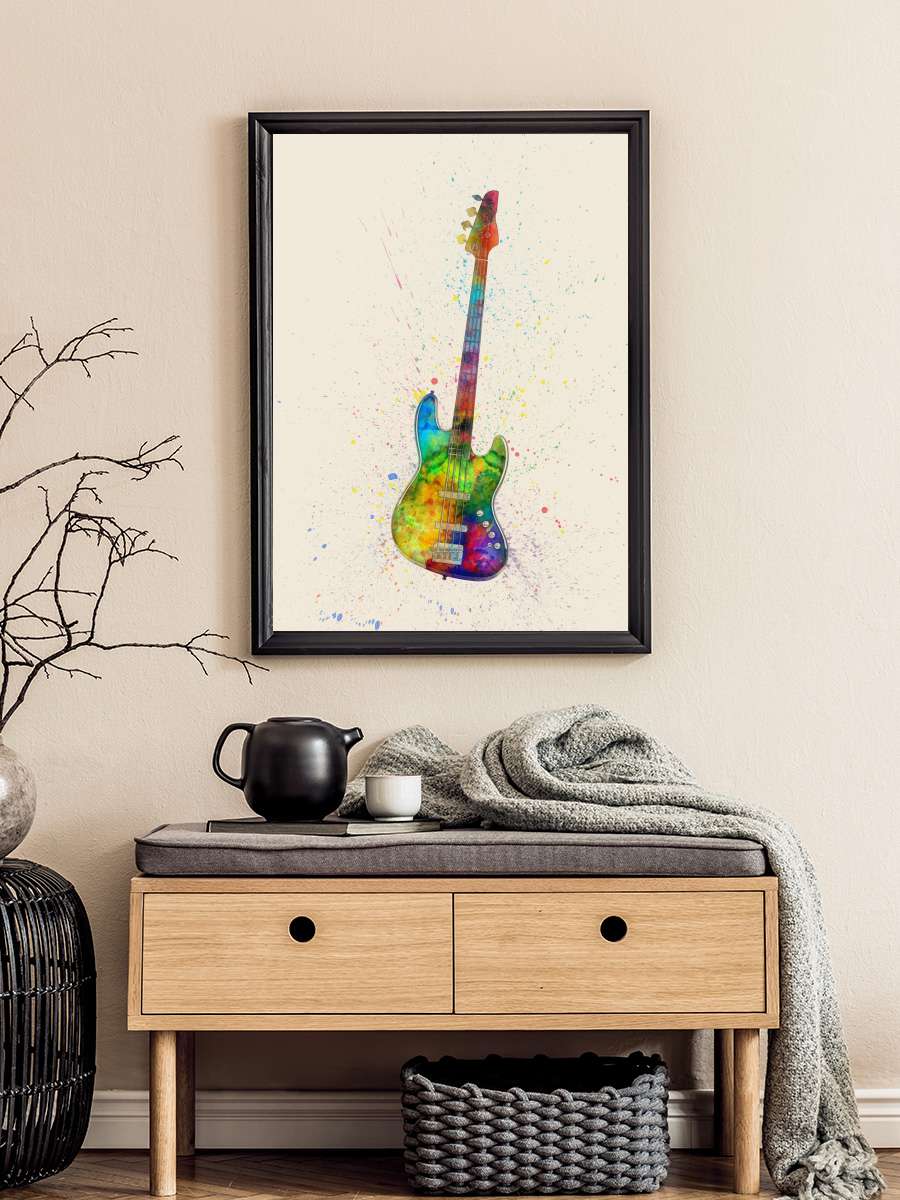 Electric Bass Guitar Abstract… Abstract Watercolor Müzik Poster Tablo Siyah Çerçeveli Yüksek Kalite Müzik Duvar Tablo