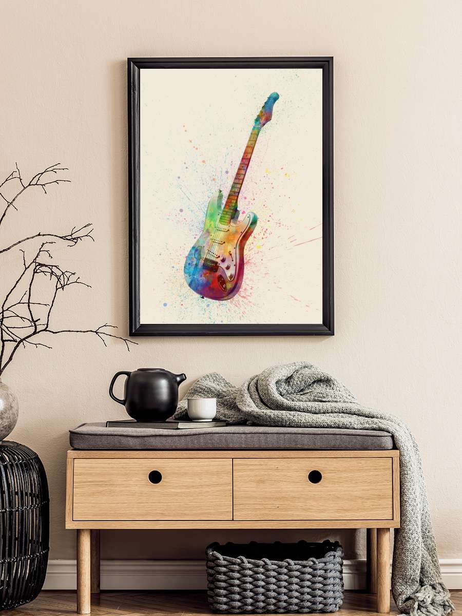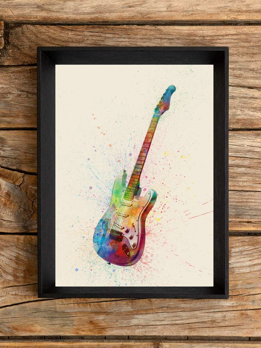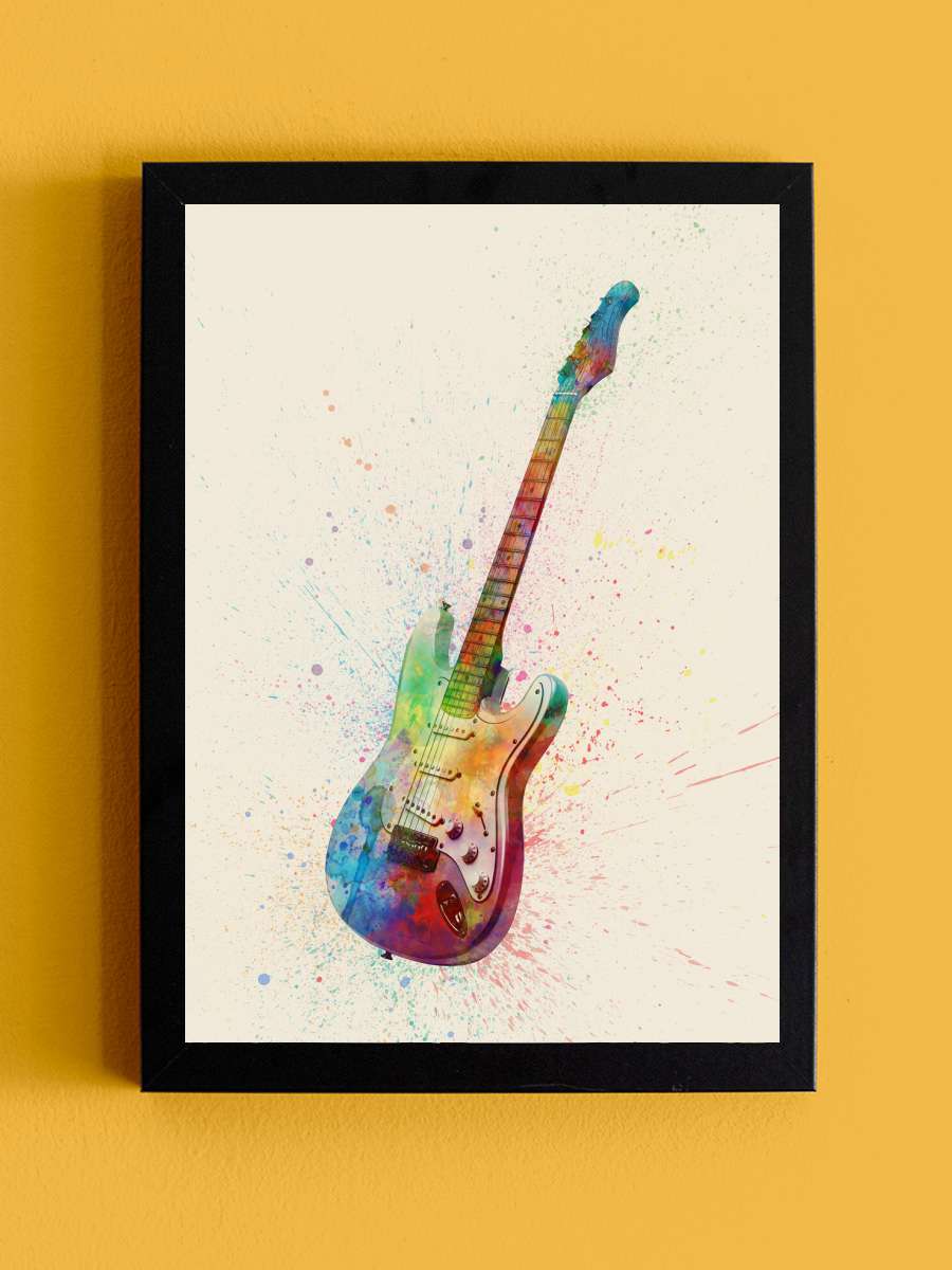 Electric Guitar Abstract… Abstract Watercolor Müzik Poster Tablo Siyah Çerçeveli Yüksek Kalite Müzik Duvar Tablo