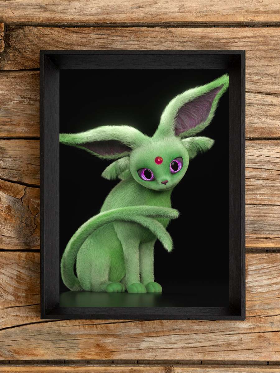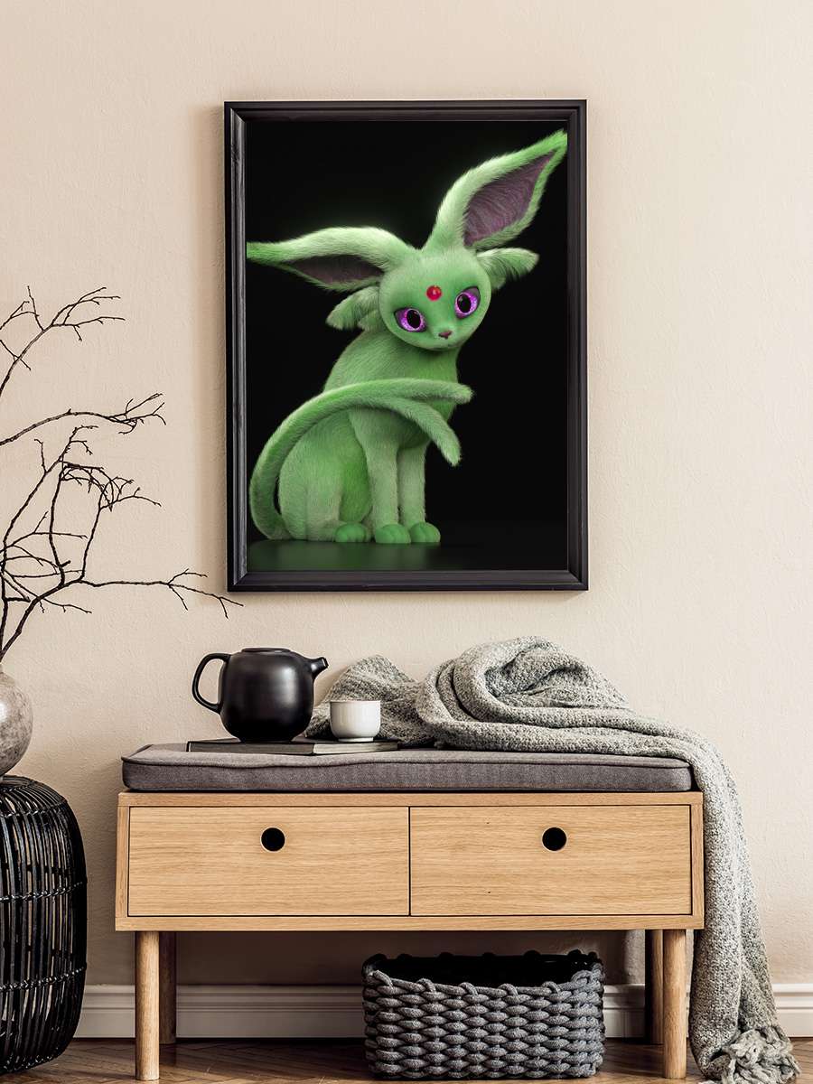 Elegant Espeon - Shiny Anime Poster Tablo Siyah Çerçeveli Yüksek Kalite Anime Duvar Tablo