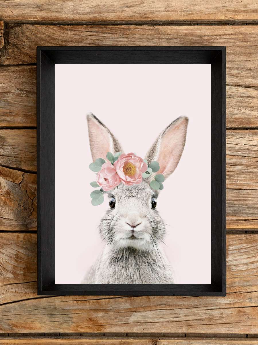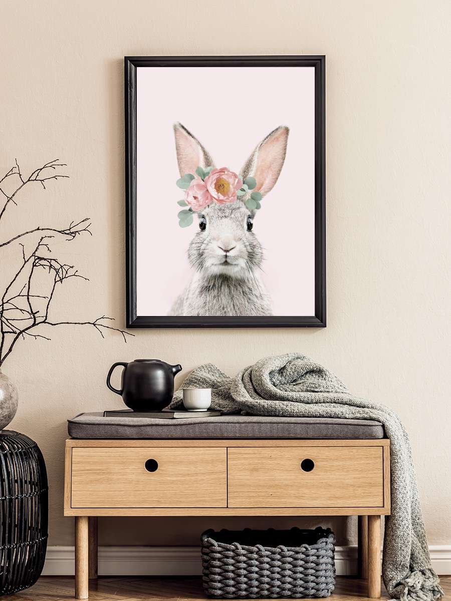 Flower crown bunny pink Çocuk Odası Tablo Siyah Çerçeveli Poster Çocuk Bebek Odası Duvar Tablo