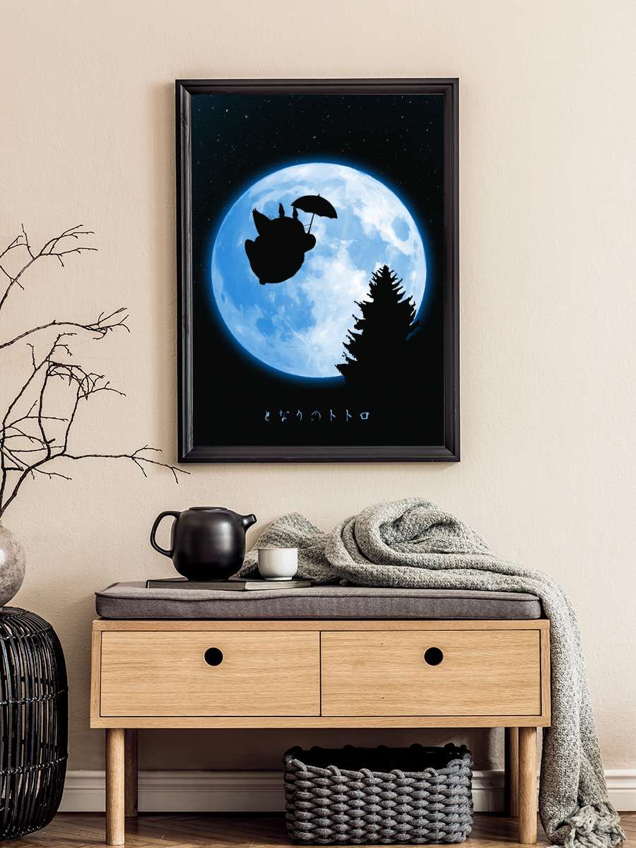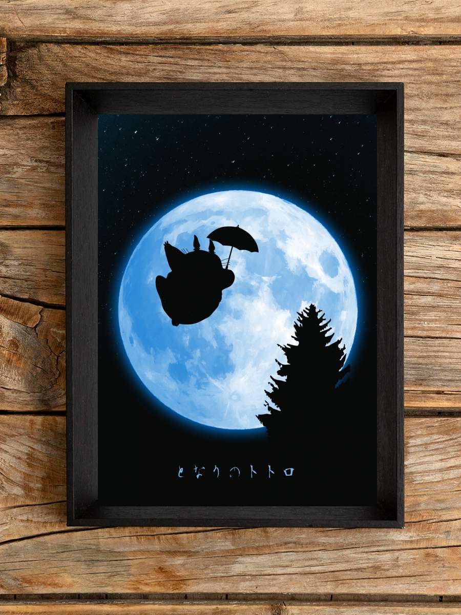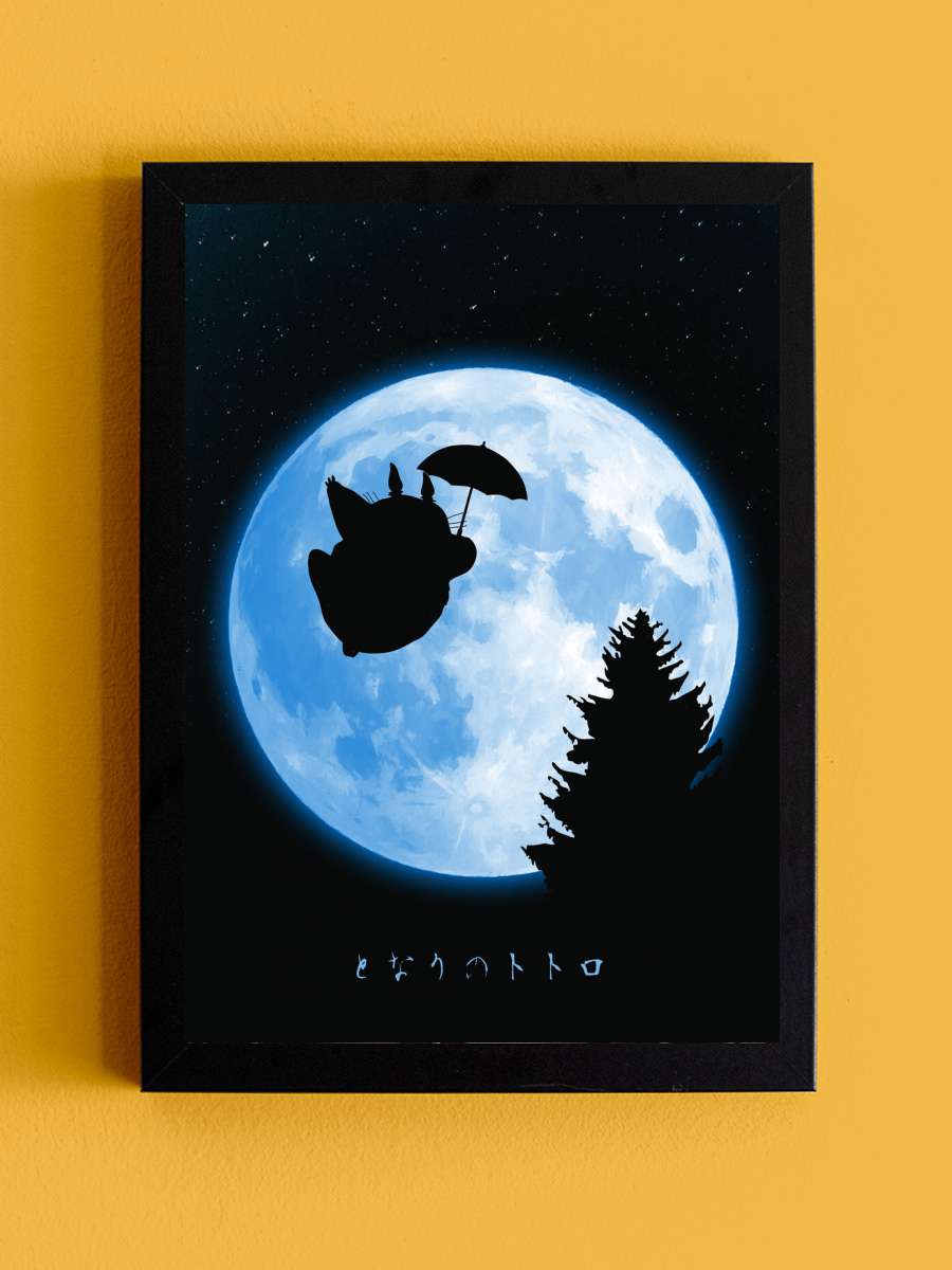 Flying under the moon Anime Poster Tablo Siyah Çerçeveli Yüksek Kalite Anime Duvar Tablo