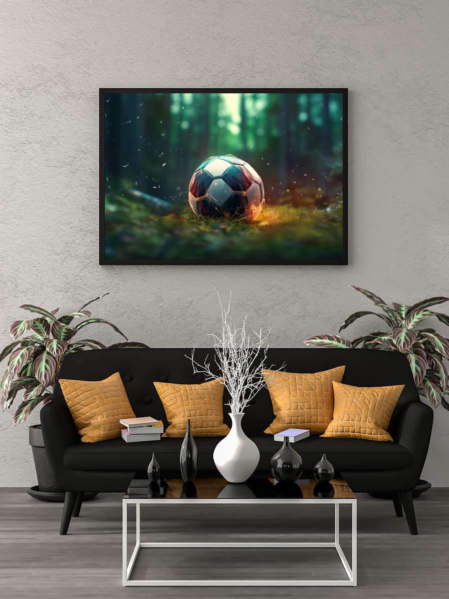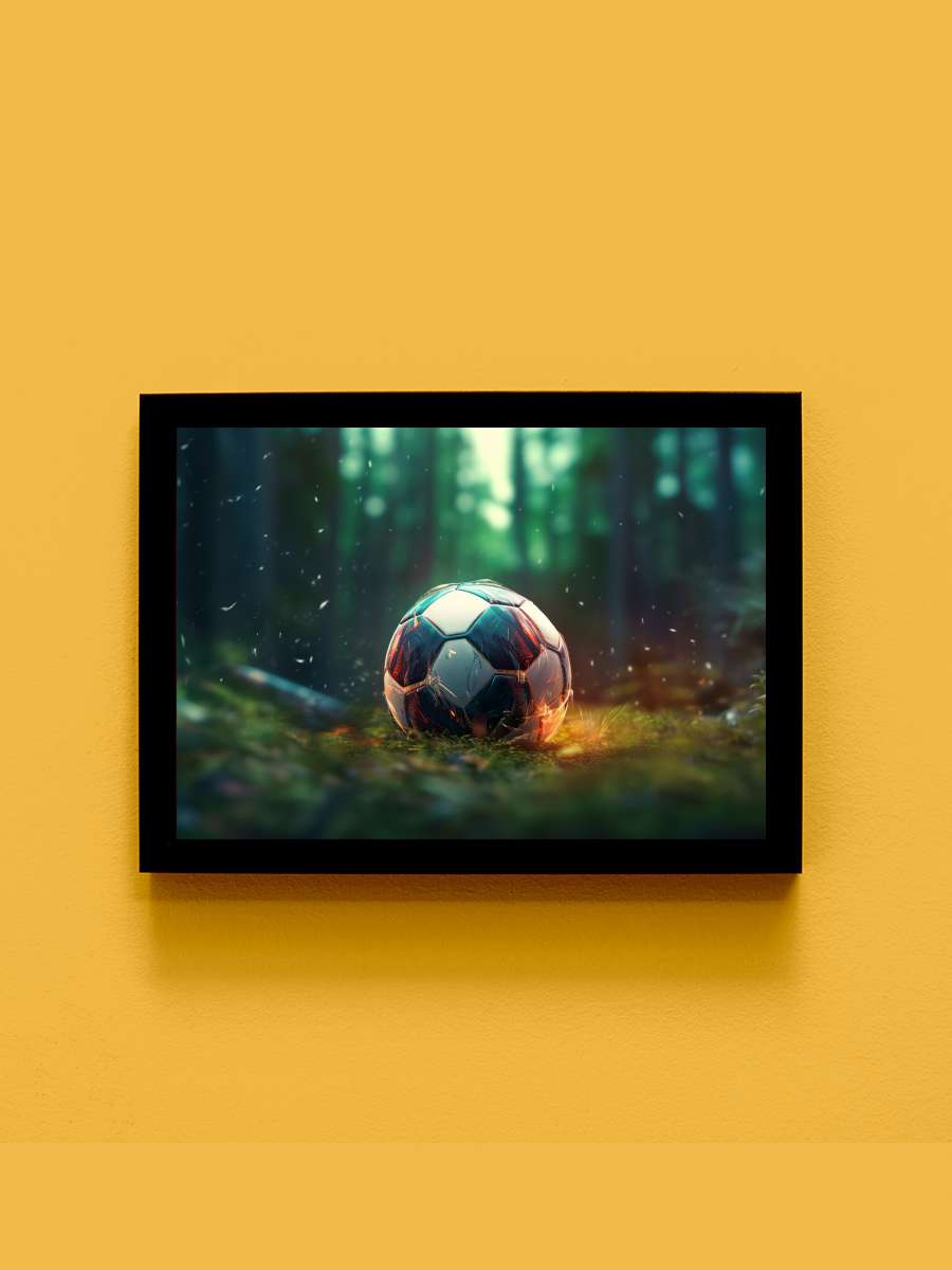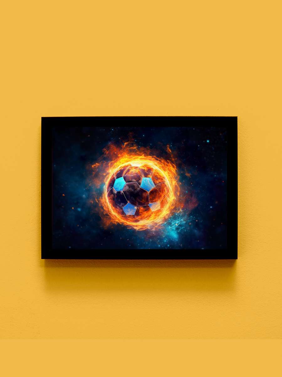 Football Ball Soccer Futbol Tablo Siyah Çerçeveli Futbolcu Poster Duvar Tablo