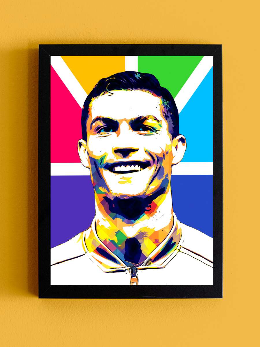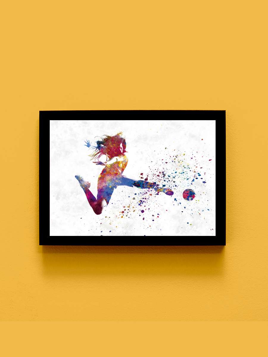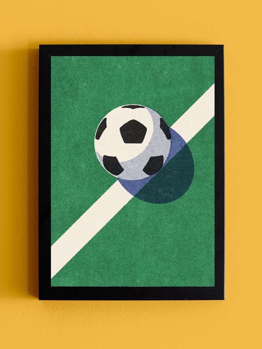Football Ball Soccer Futbol Tablo Siyah Çerçeveli Futbolcu Poster Duvar Tablo