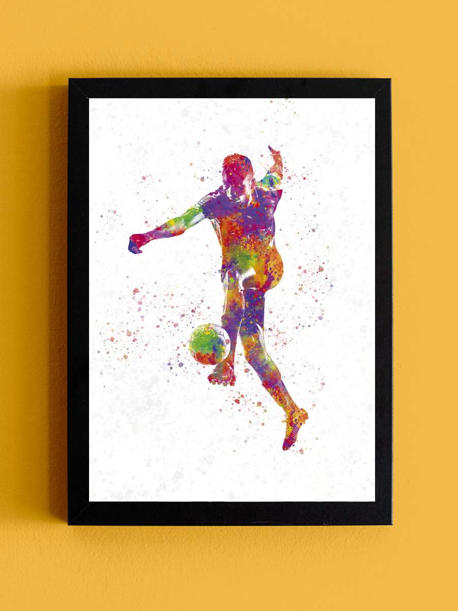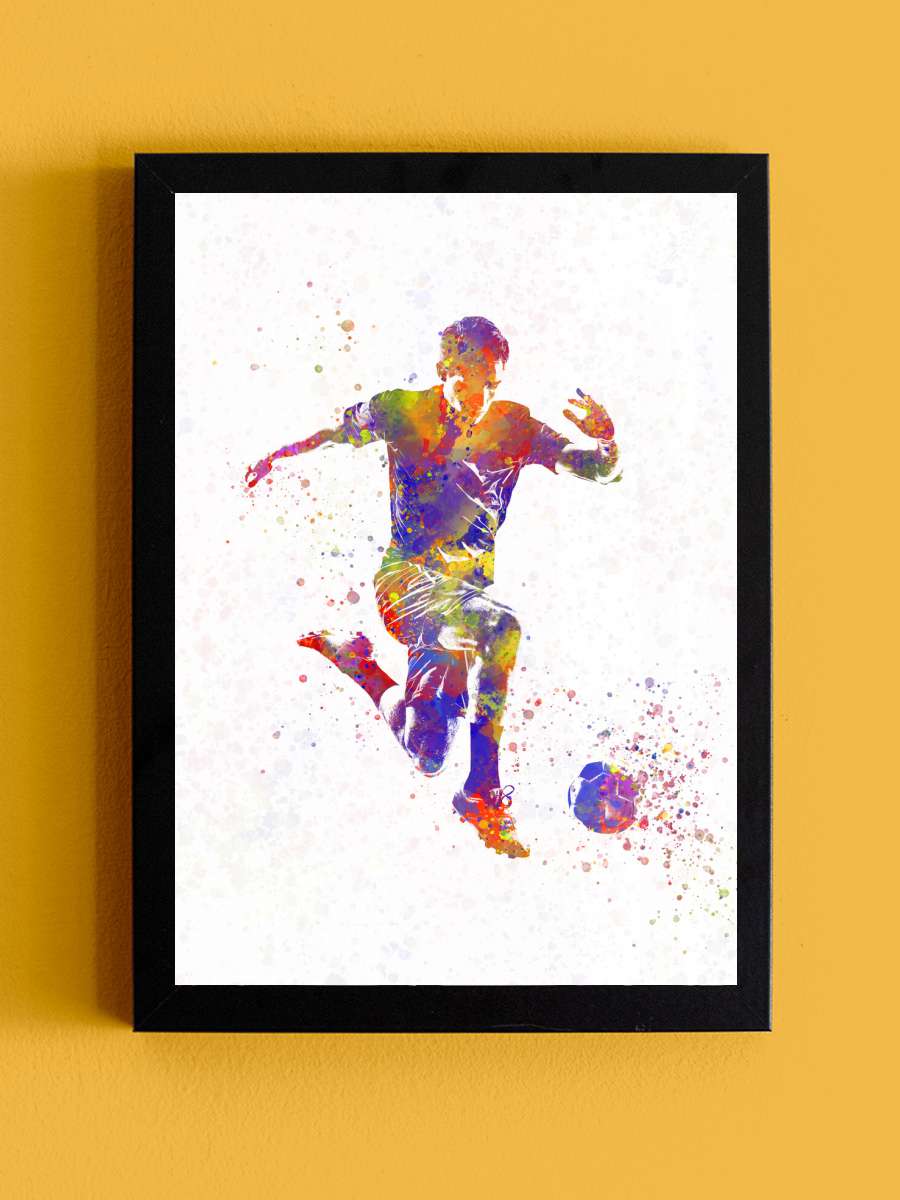 Football Player Futbol Tablo Siyah Çerçeveli Futbolcu Poster Duvar Tablo