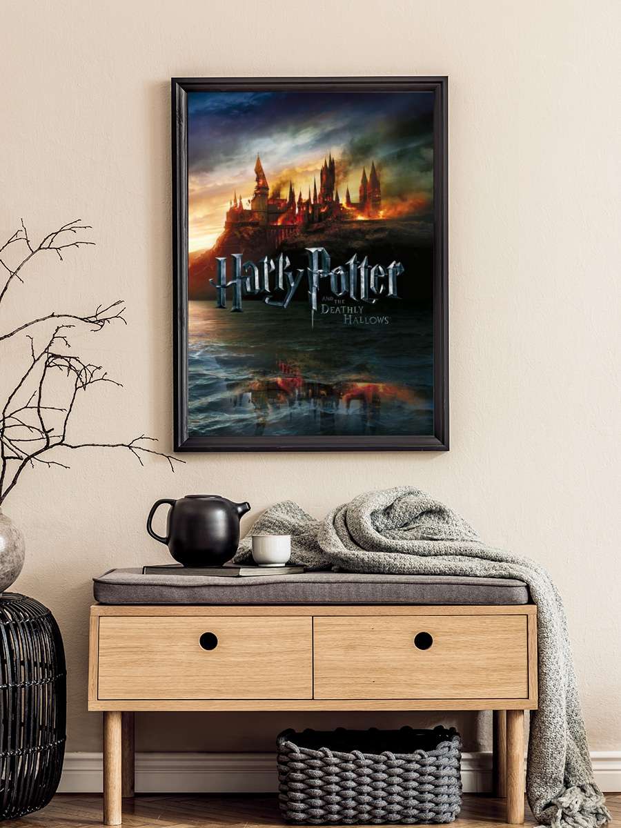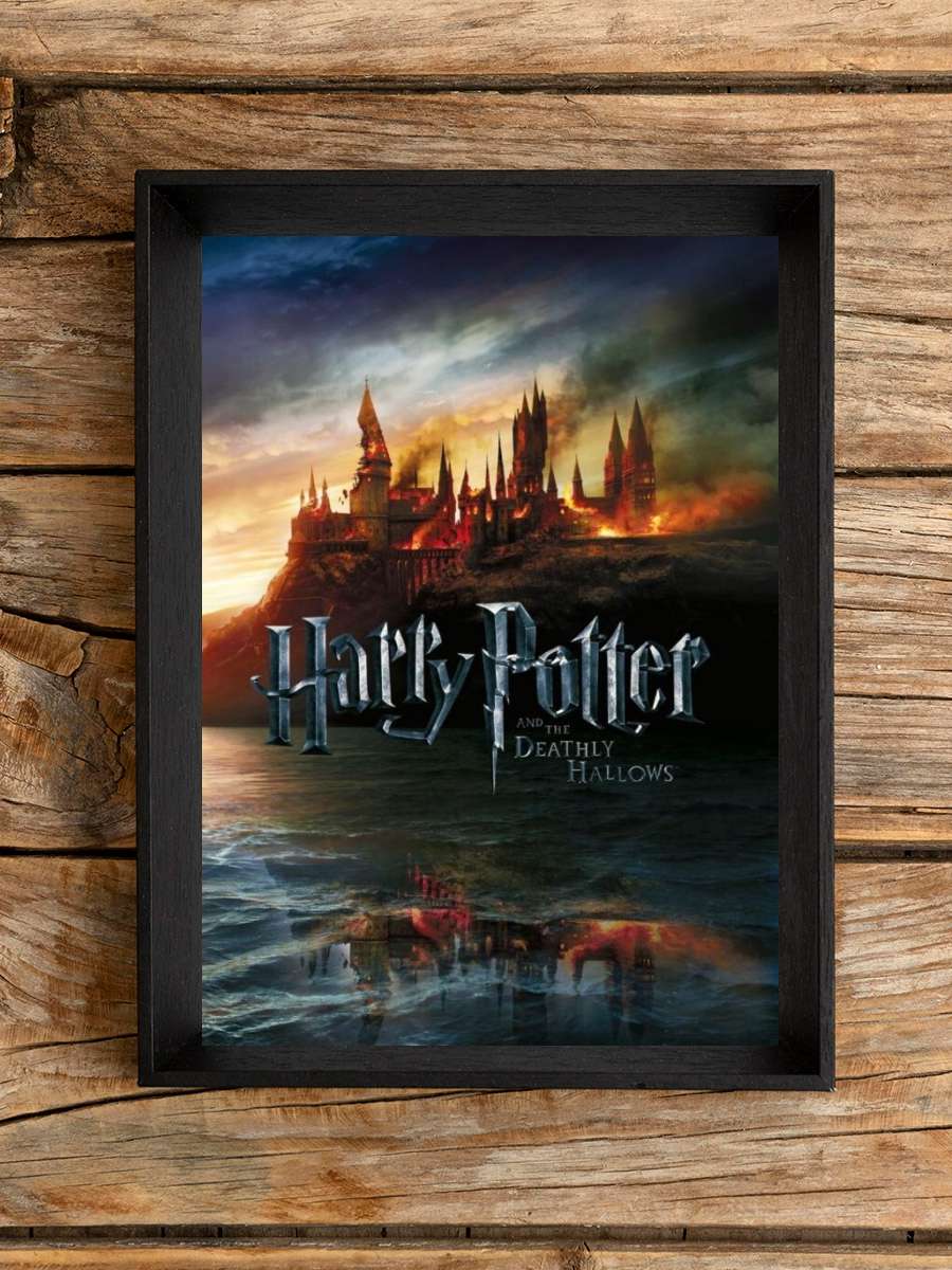 Harry Potter - Burning Hogwarts Film Poster Tablo Siyah Çerçeveli Yüksek Kalite Film Duvar Tablo
