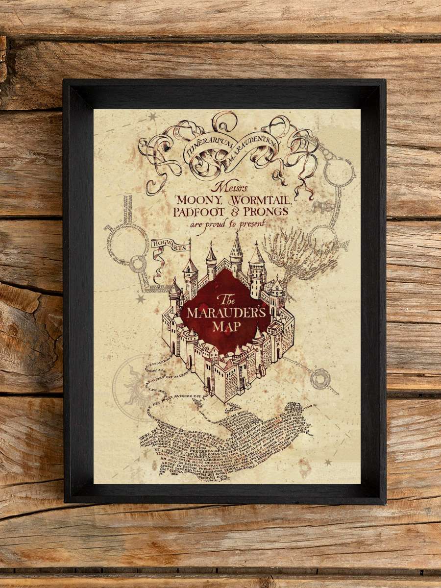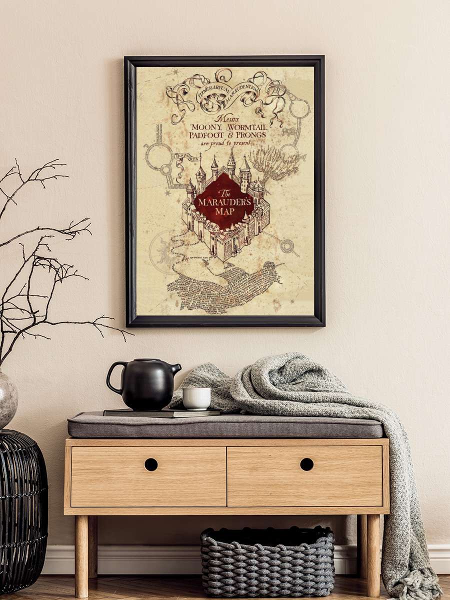 Harry Potter - Marauder's Map Film Poster Tablo Siyah Çerçeveli Yüksek Kalite Film Duvar Tablo