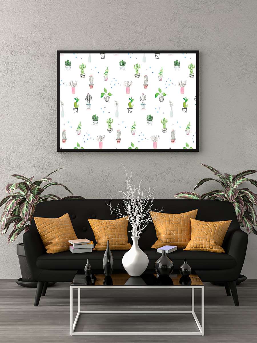 Houseplants and cacti Çocuk Odası Tablo Siyah Çerçeveli Poster Çocuk Bebek Odası Duvar Tablo