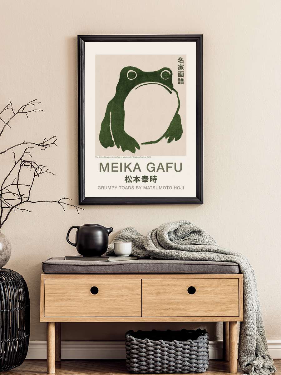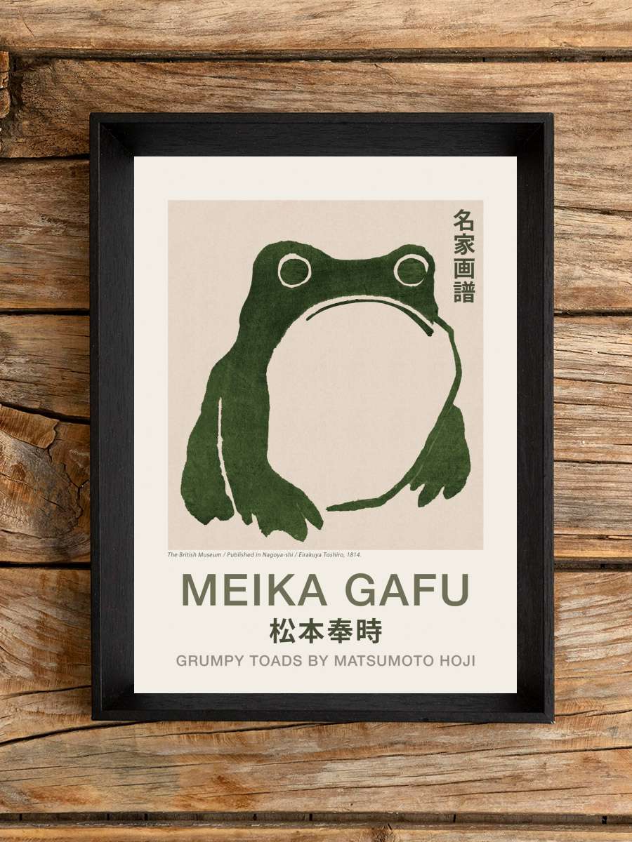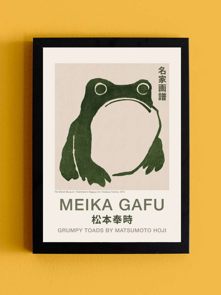 Japanese Grumpy Toad Sanatsal Modern Tablo Siyah Çerçeveli Poster Modern Duvar Tablo