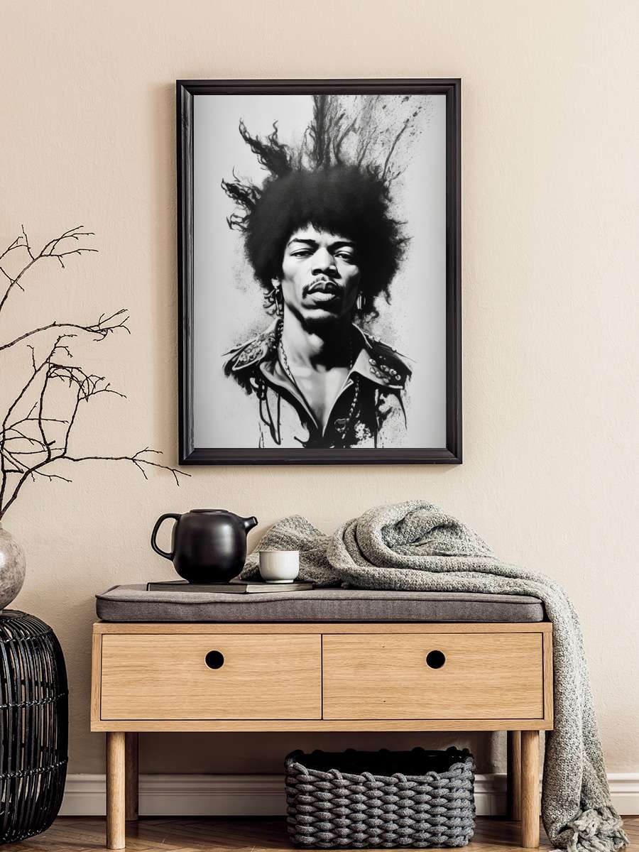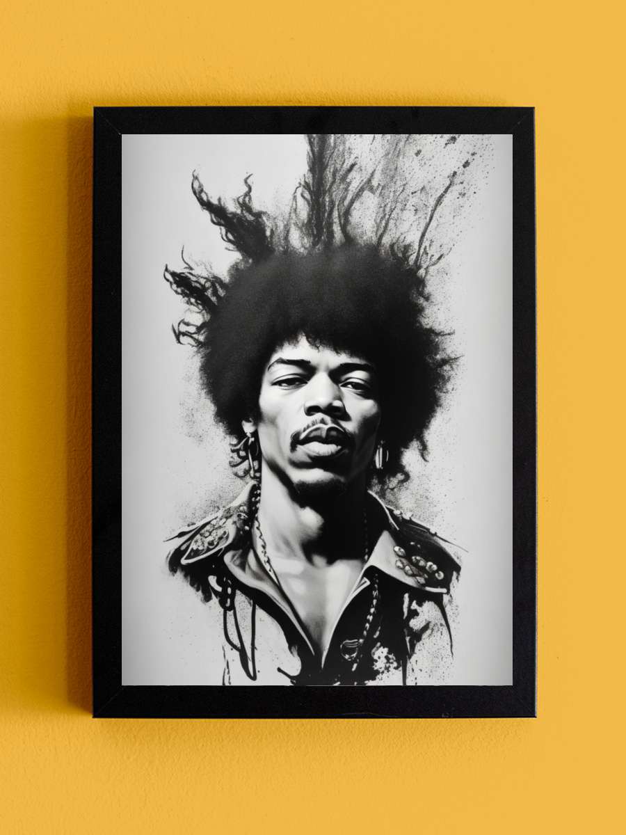 Jimi Hendrix Splash Müzik Poster Tablo Siyah Çerçeveli Yüksek Kalite Müzik Duvar Tablo