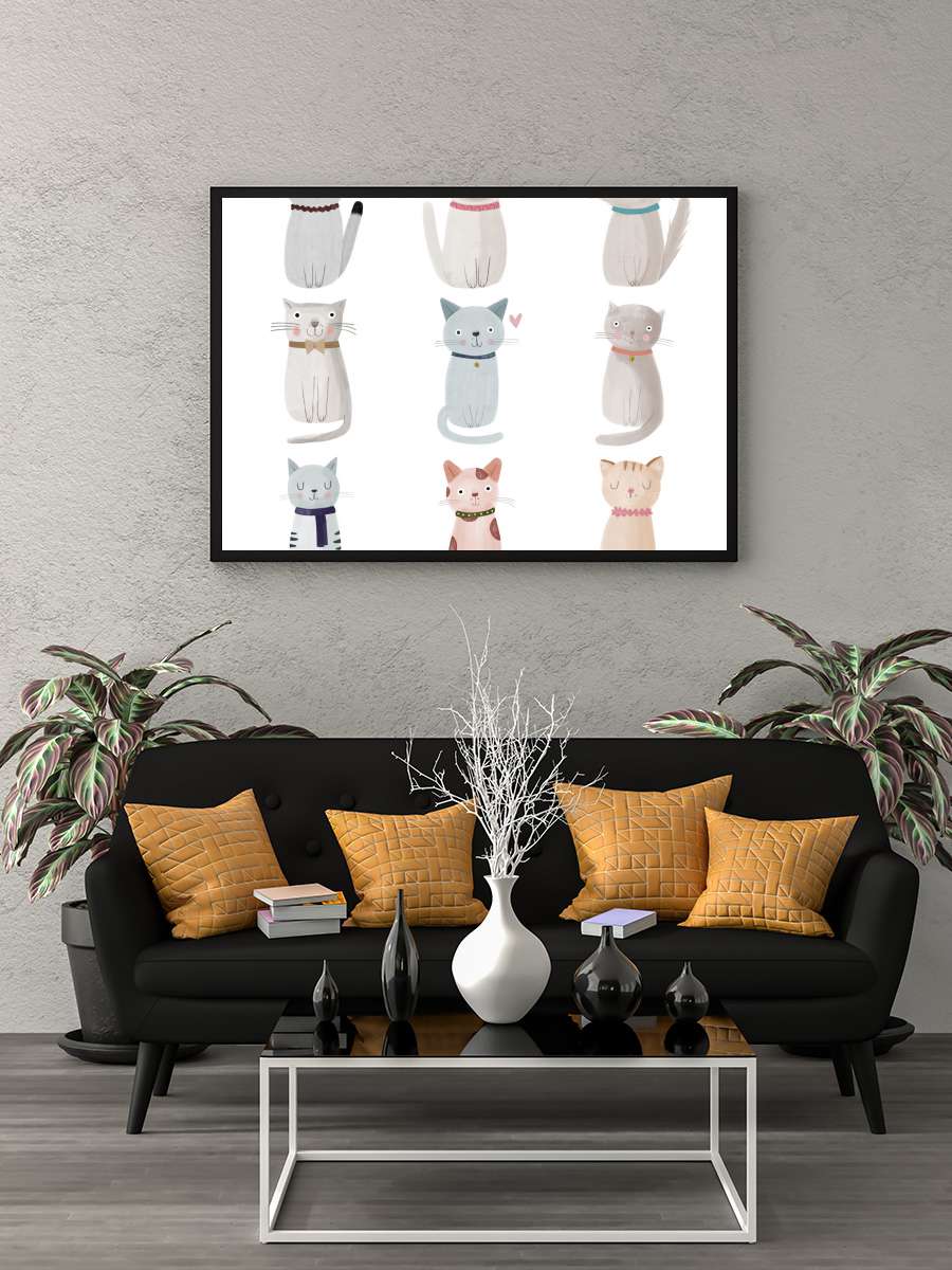 Judith Loske - Cat Family Çocuk Odası Tablo Siyah Çerçeveli Poster Çocuk Bebek Odası Duvar Tablo