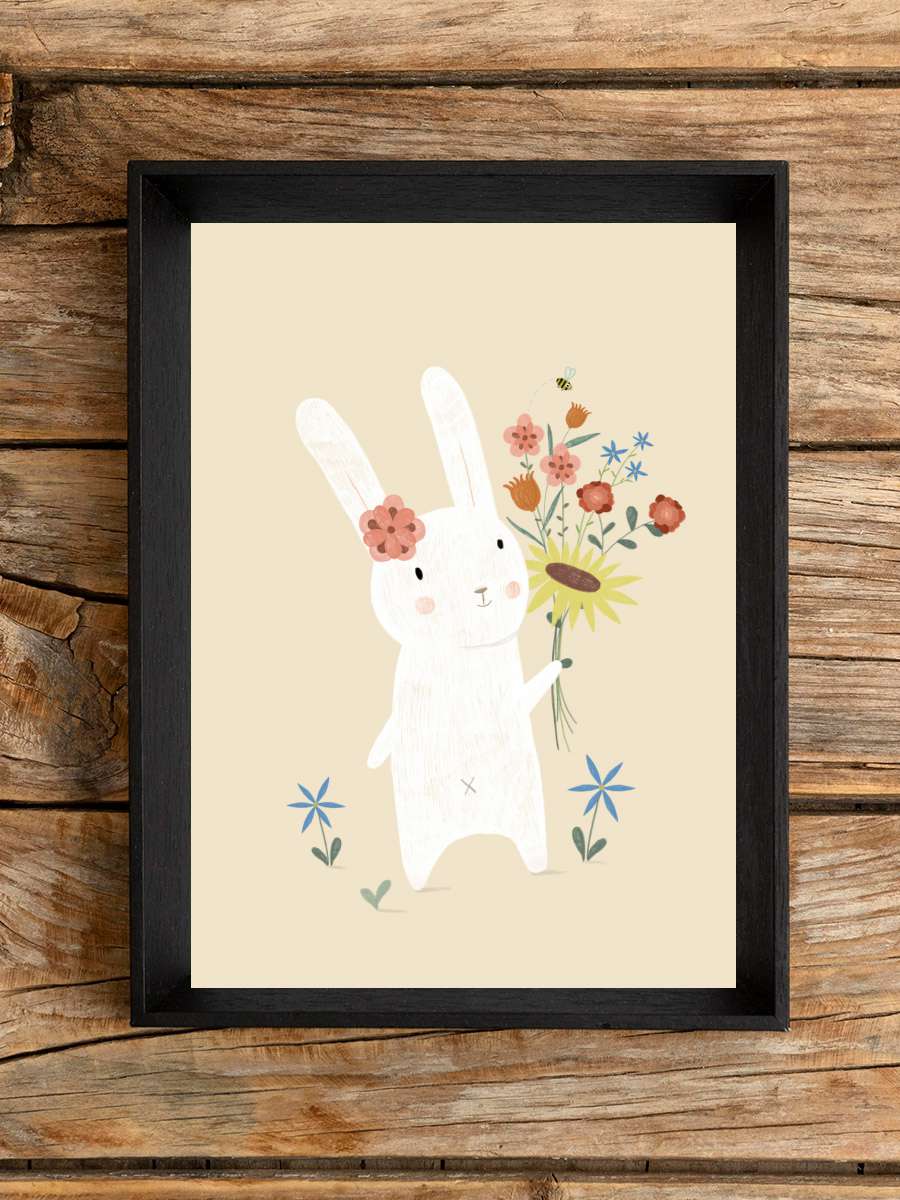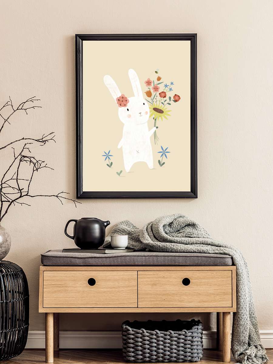 Judith Loske - Flowers Rabbit Çocuk Odası Tablo Siyah Çerçeveli Poster Çocuk Bebek Odası Duvar Tablo