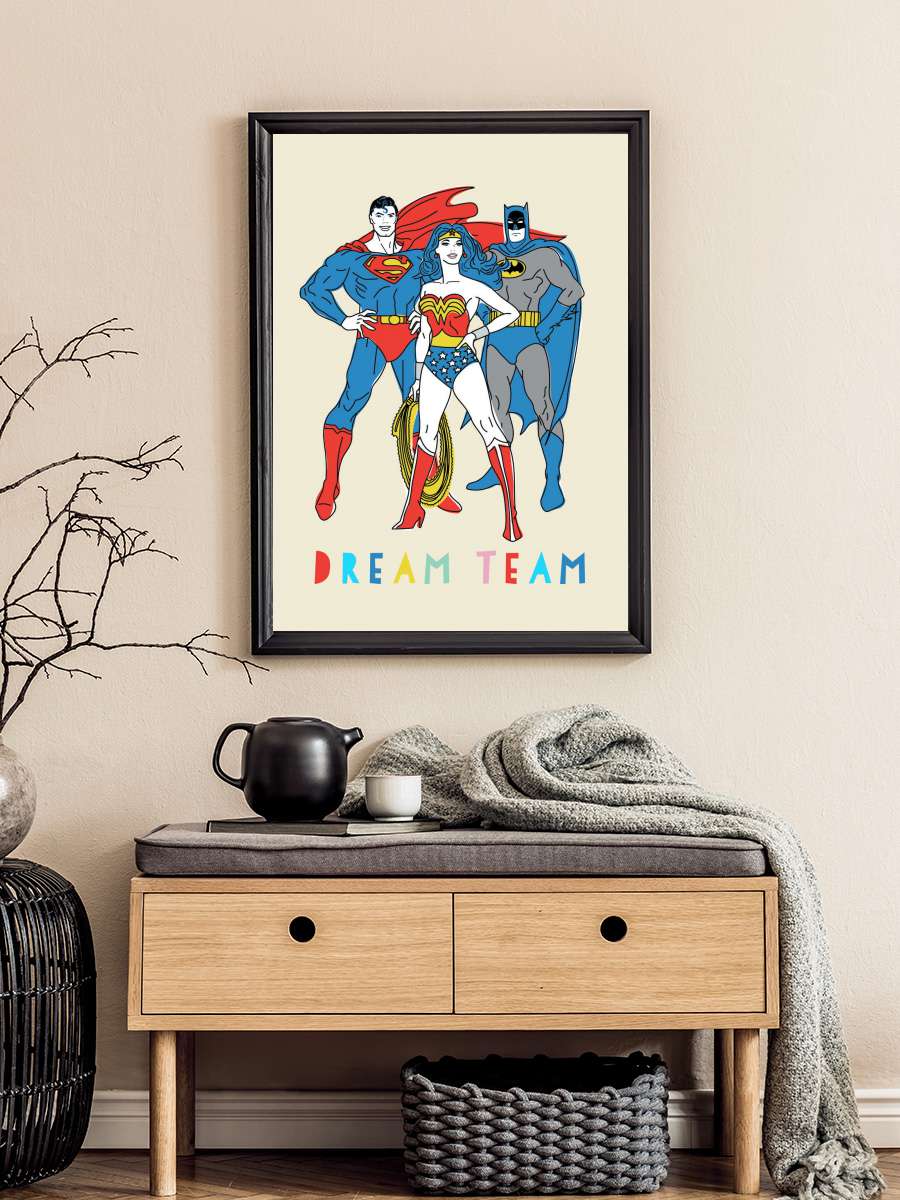 Justice League - Dream Team Film Poster Tablo Siyah Çerçeveli Yüksek Kalite Film Duvar Tablo