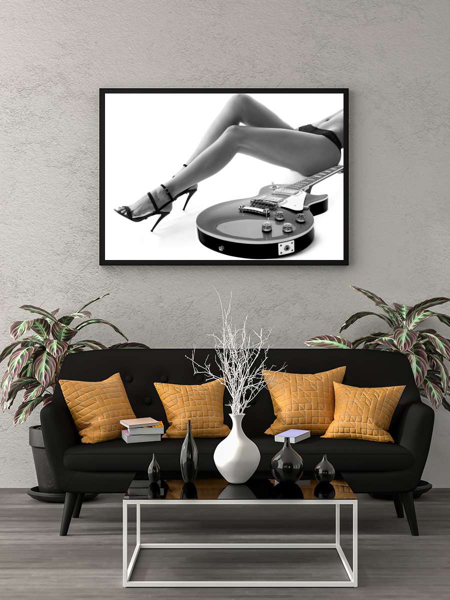Leggy Les Paul Müzik Poster Tablo Siyah Çerçeveli Yüksek Kalite Müzik Duvar Tablo