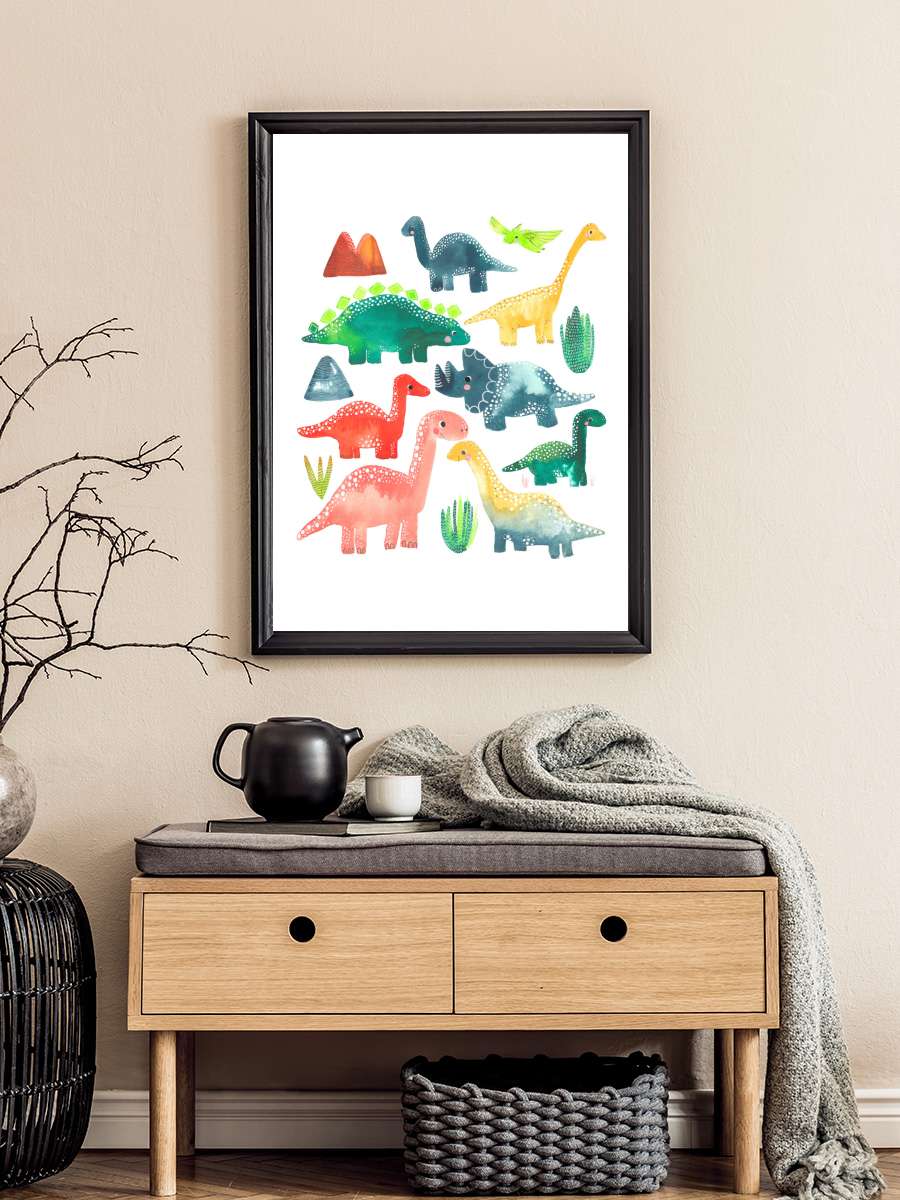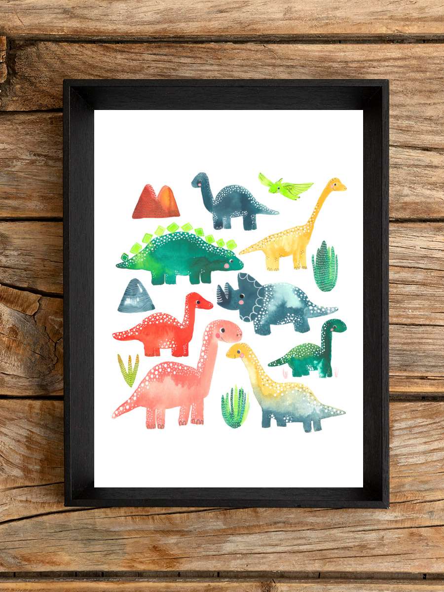 Lisa Dolson - Dinosaur Çocuk Odası Tablo Siyah Çerçeveli Poster Çocuk Bebek Odası Duvar Tablo
