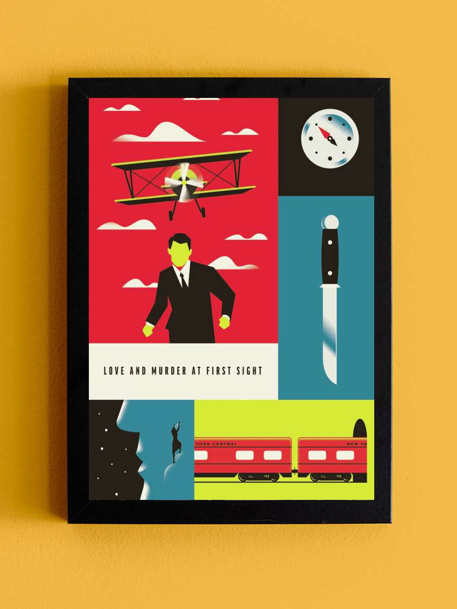 North by northwest -The master… master of suspense Film Poster Tablo Siyah Çerçeveli Yüksek Kalite Film Duvar Tablo