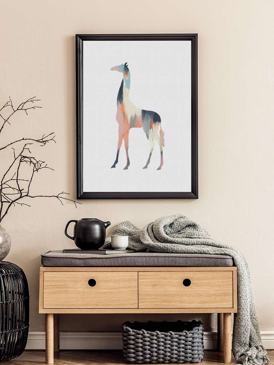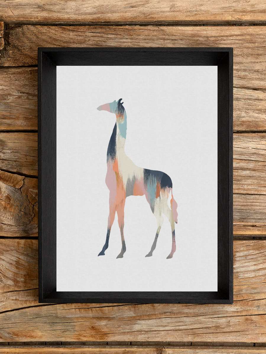 Pastel Giraffe Çocuk Odası Tablo Siyah Çerçeveli Poster Çocuk Bebek Odası Duvar Tablo