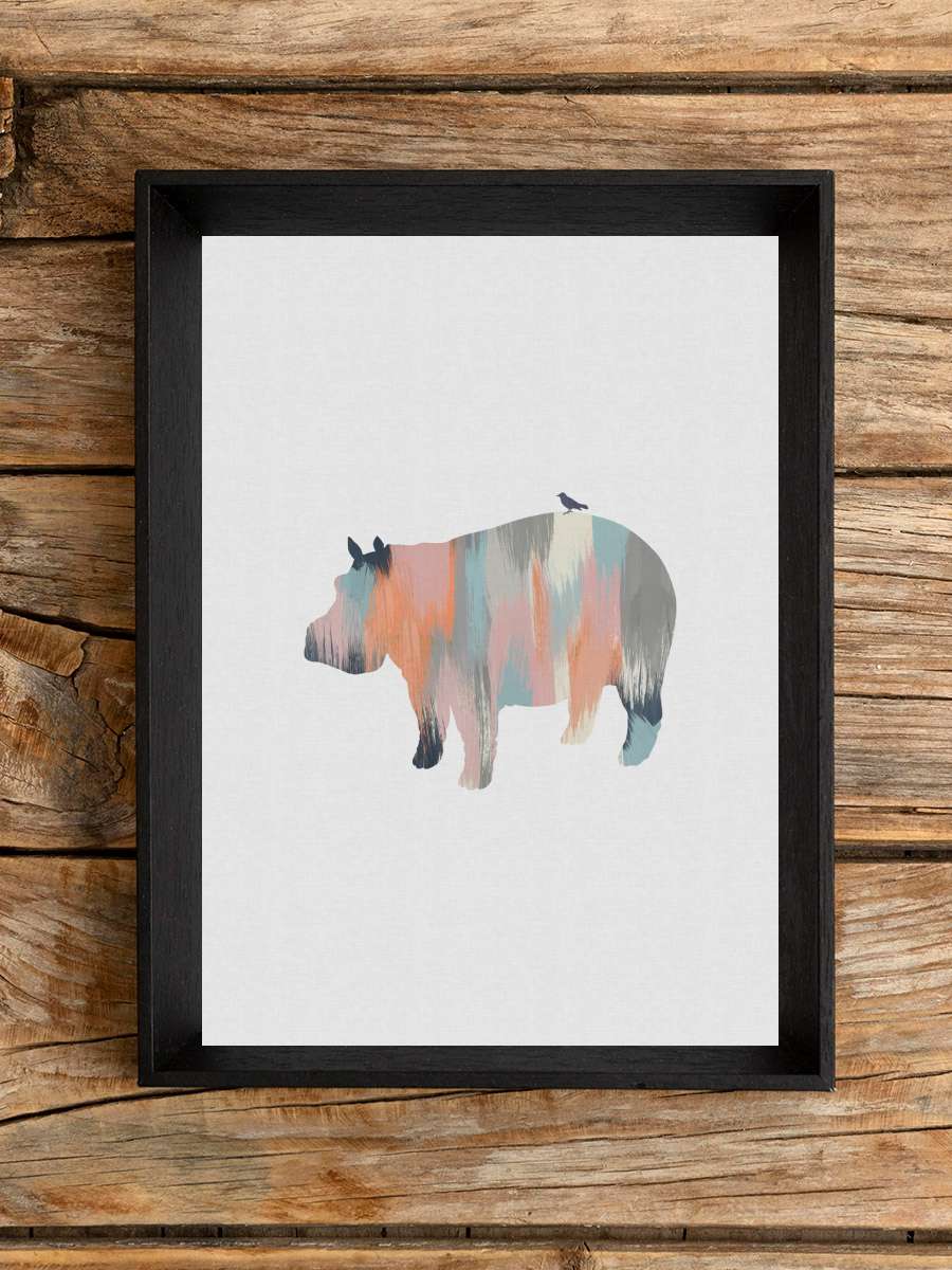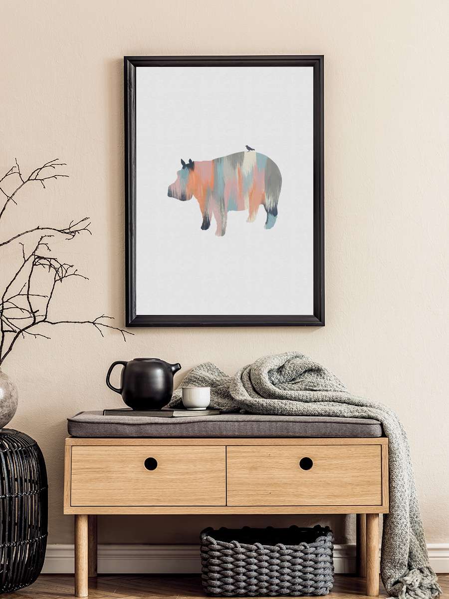 Pastel Hippo Çocuk Odası Tablo Siyah Çerçeveli Poster Çocuk Bebek Odası Duvar Tablo