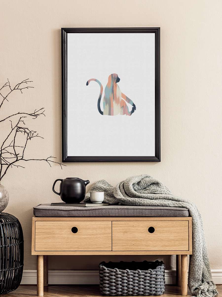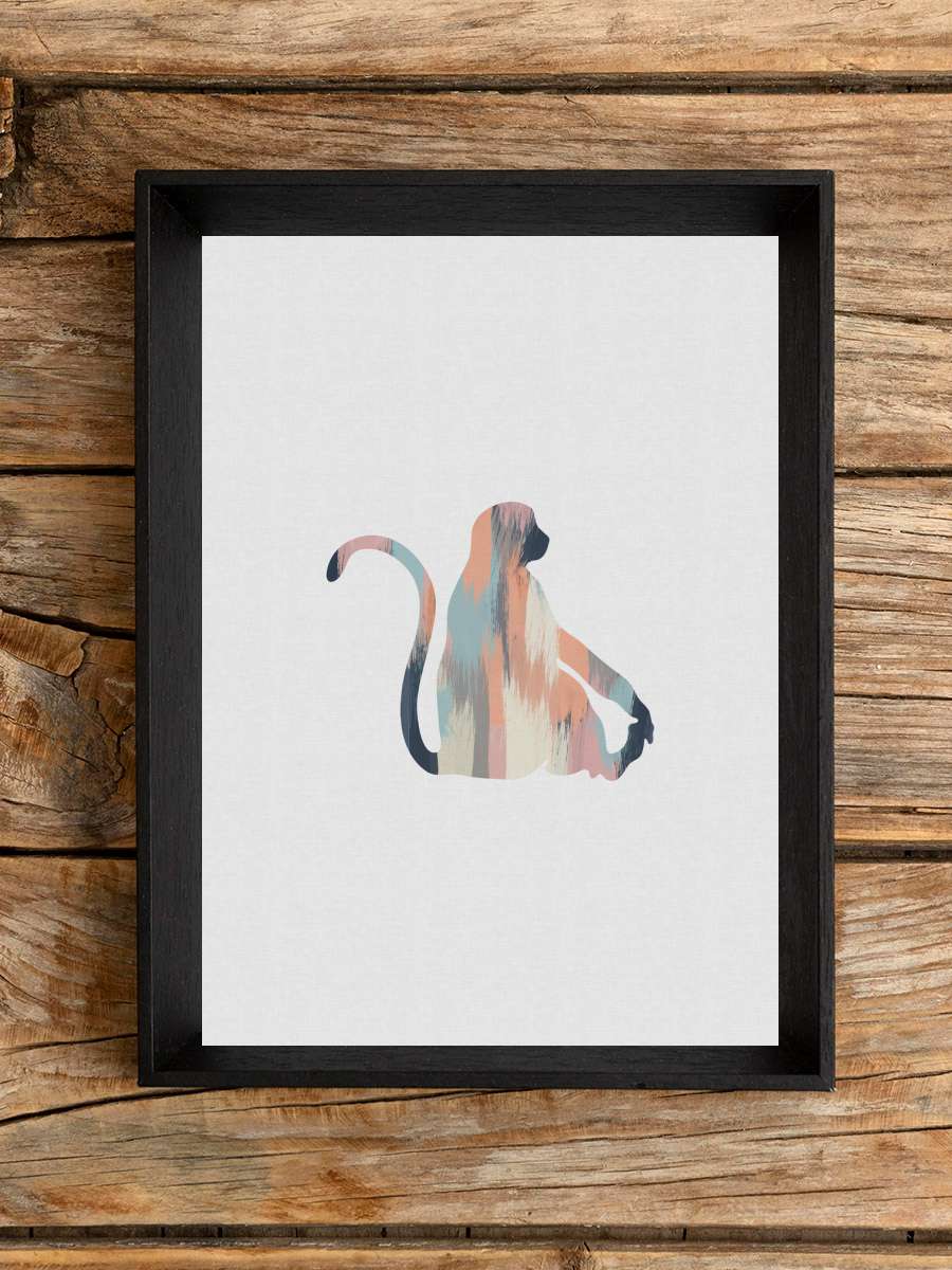 Pastel Monkey Çocuk Odası Tablo Siyah Çerçeveli Poster Çocuk Bebek Odası Duvar Tablo