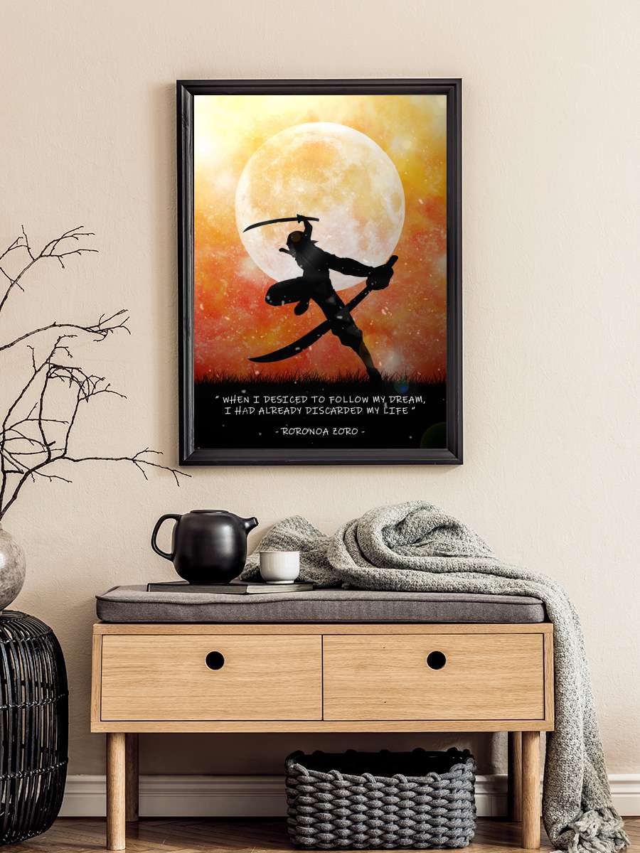 roronoa zoro quotes Anime Poster Tablo Siyah Çerçeveli Yüksek Kalite Anime Duvar Tablo