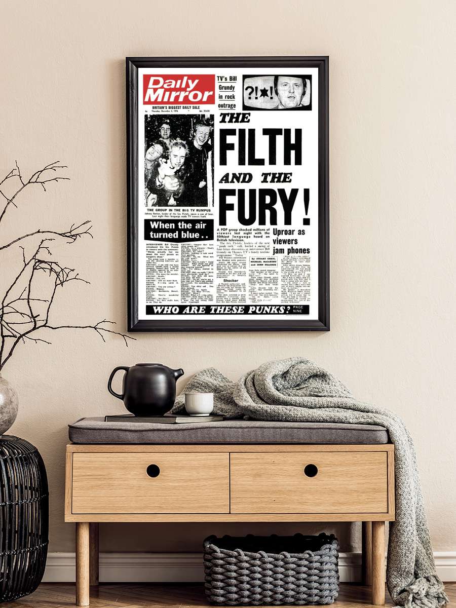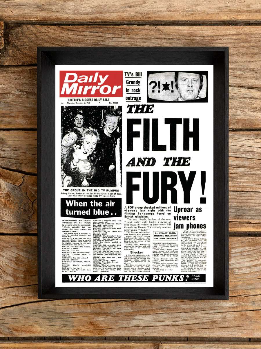 Sex Pistols - Daily Mirror Müzik Poster Tablo Siyah Çerçeveli Yüksek Kalite Müzik Duvar Tablo