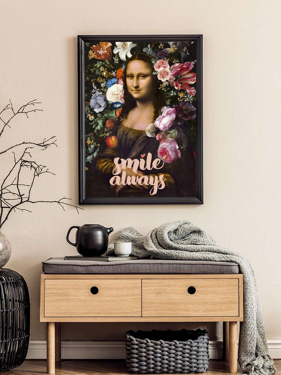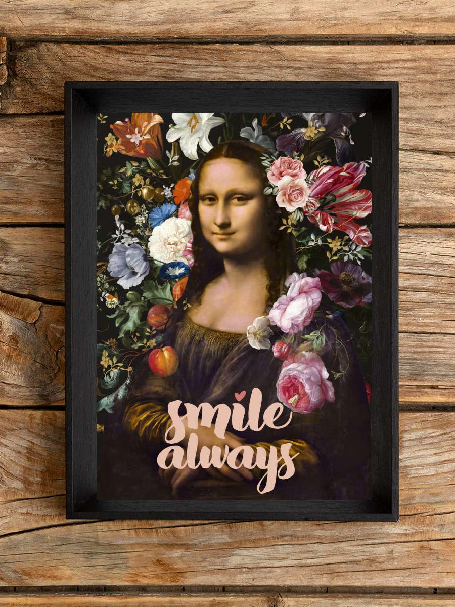 Smile Always, Mona Lisa Sanatsal Modern Tablo Siyah Çerçeveli Poster Modern Duvar Tablo