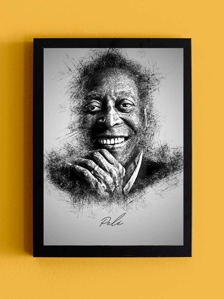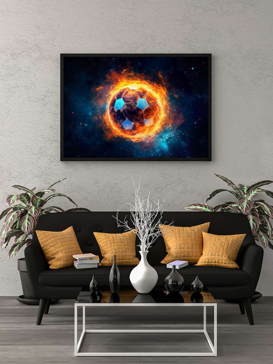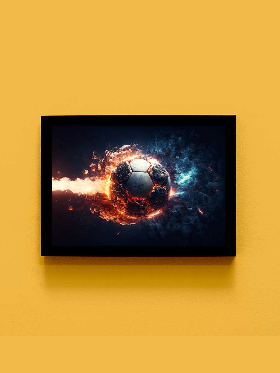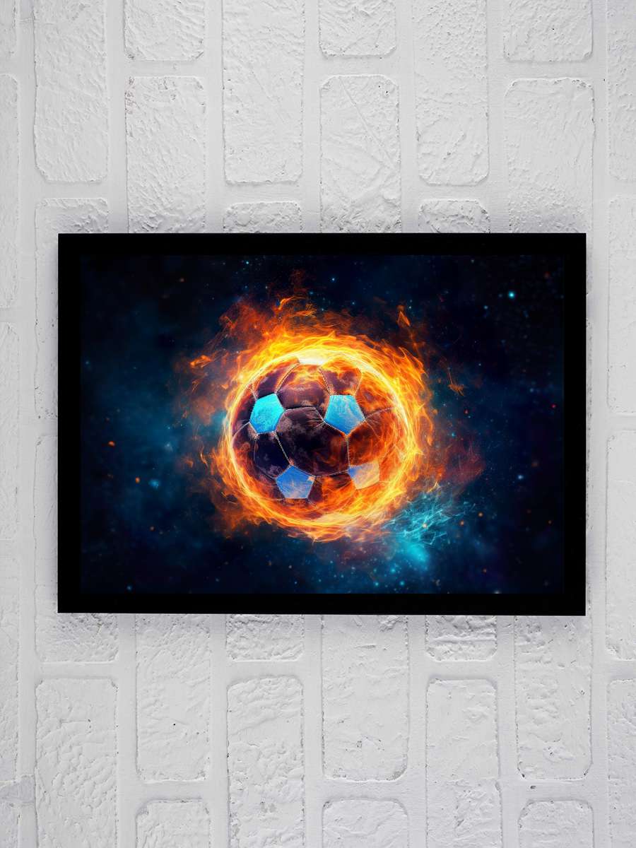 Soccer Ball Futbol Tablo Siyah Çerçeveli Futbolcu Poster Duvar Tablo