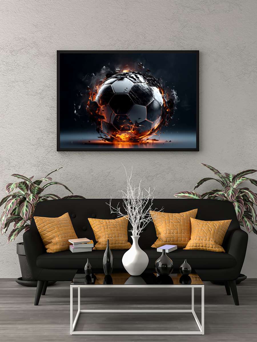 Soccer Futbol Tablo Siyah Çerçeveli Futbolcu Poster Duvar Tablo