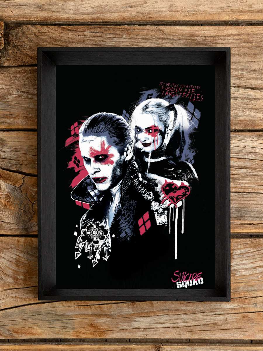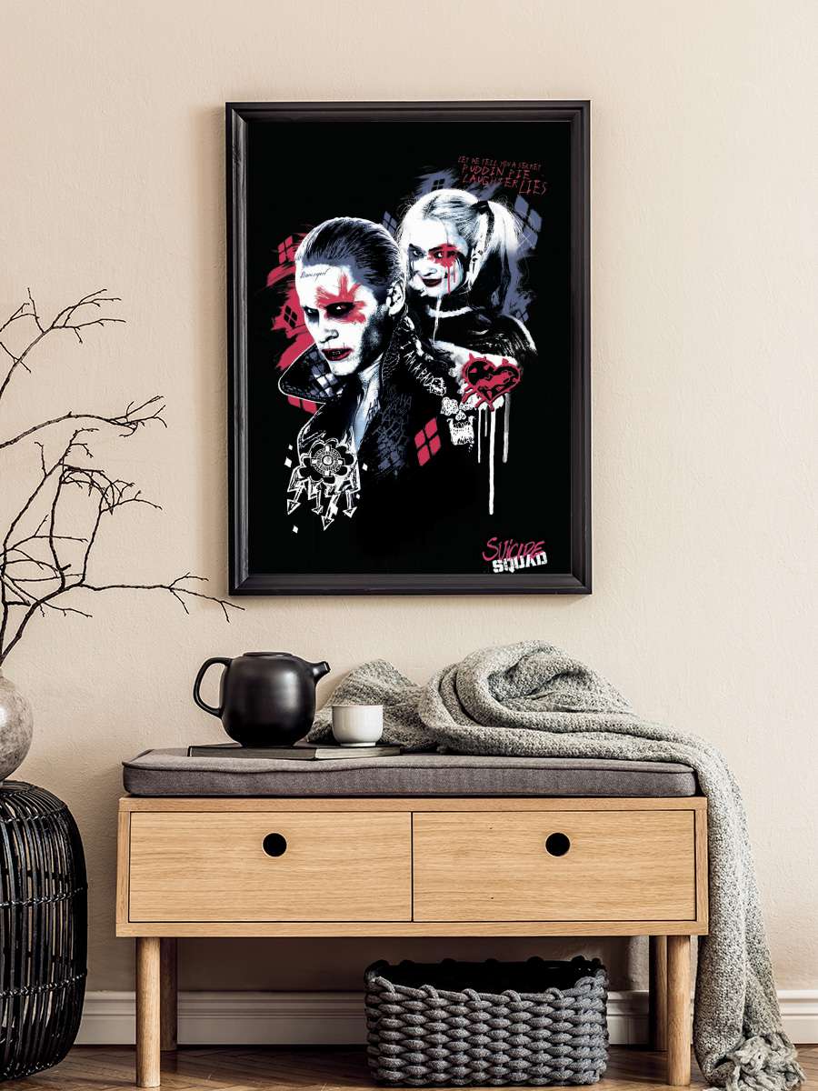 Suicide Squad - Harley and Joker Film Poster Tablo Siyah Çerçeveli Yüksek Kalite Film Duvar Tablo