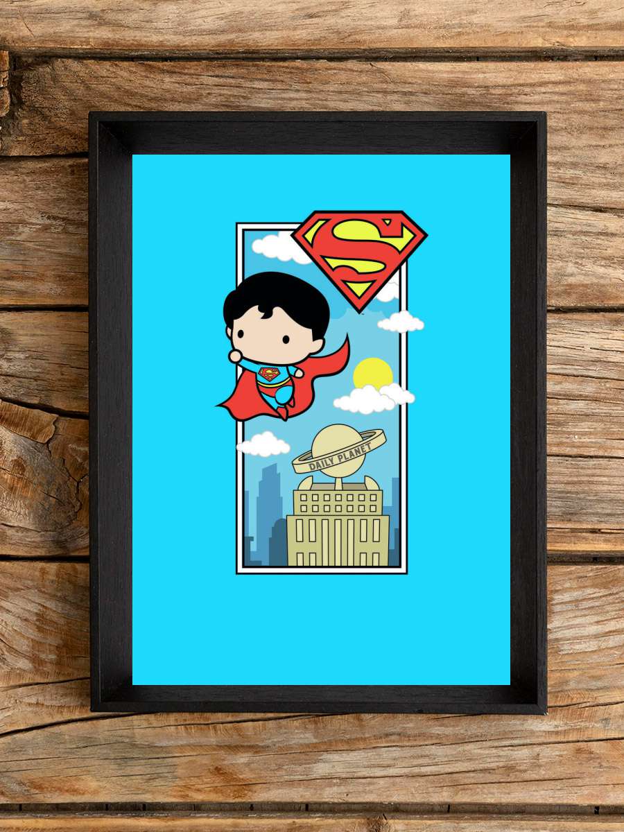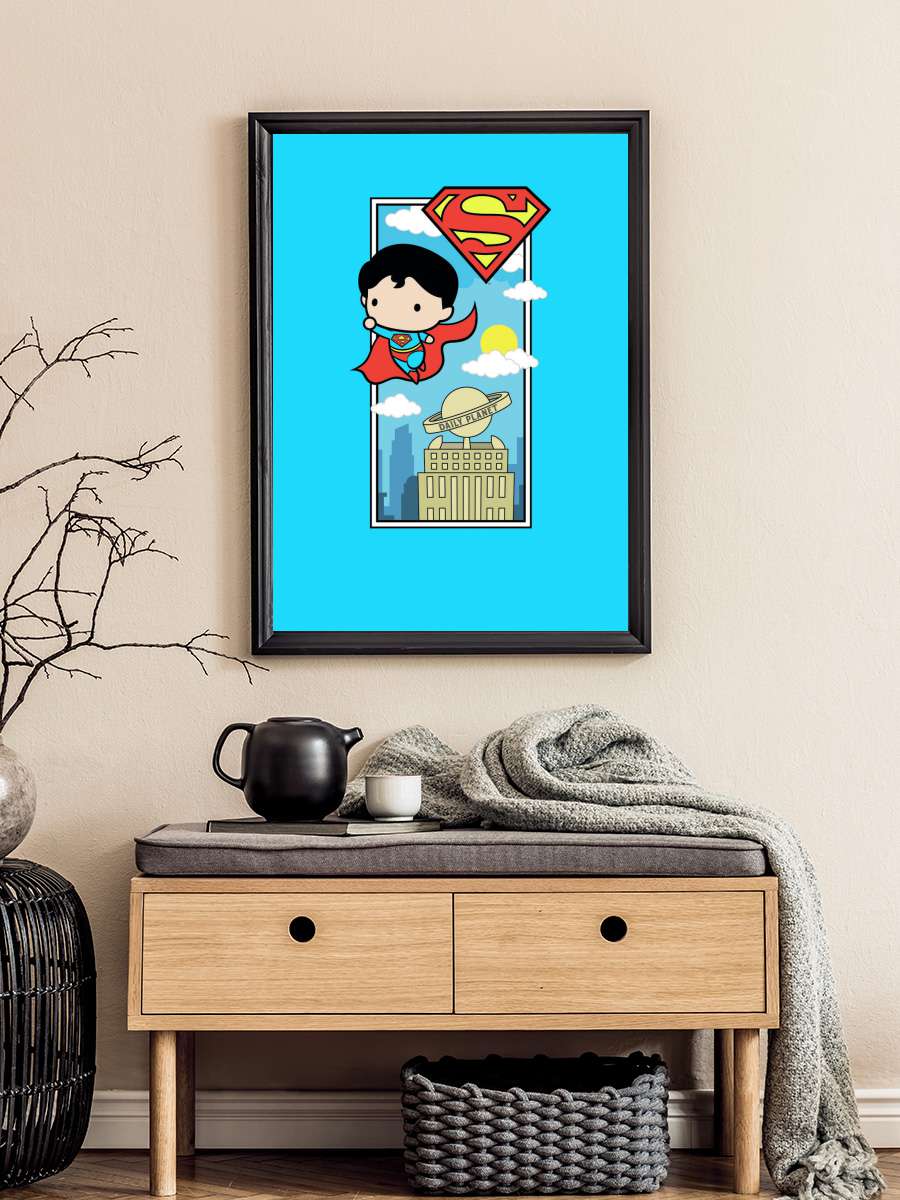 Superman - Chibi Çocuk Odası Tablo Siyah Çerçeveli Poster Çocuk Bebek Odası Duvar Tablo