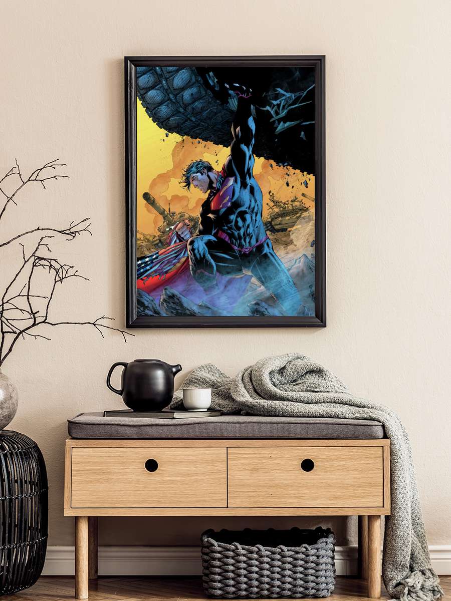 Superman - Huge power Film Poster Tablo Siyah Çerçeveli Yüksek Kalite Film Duvar Tablo