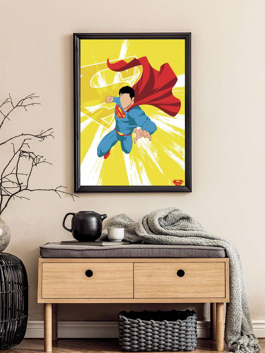 Superman - Power Yellow Çocuk Odası Tablo Siyah Çerçeveli Poster Çocuk Bebek Odası Duvar Tablo